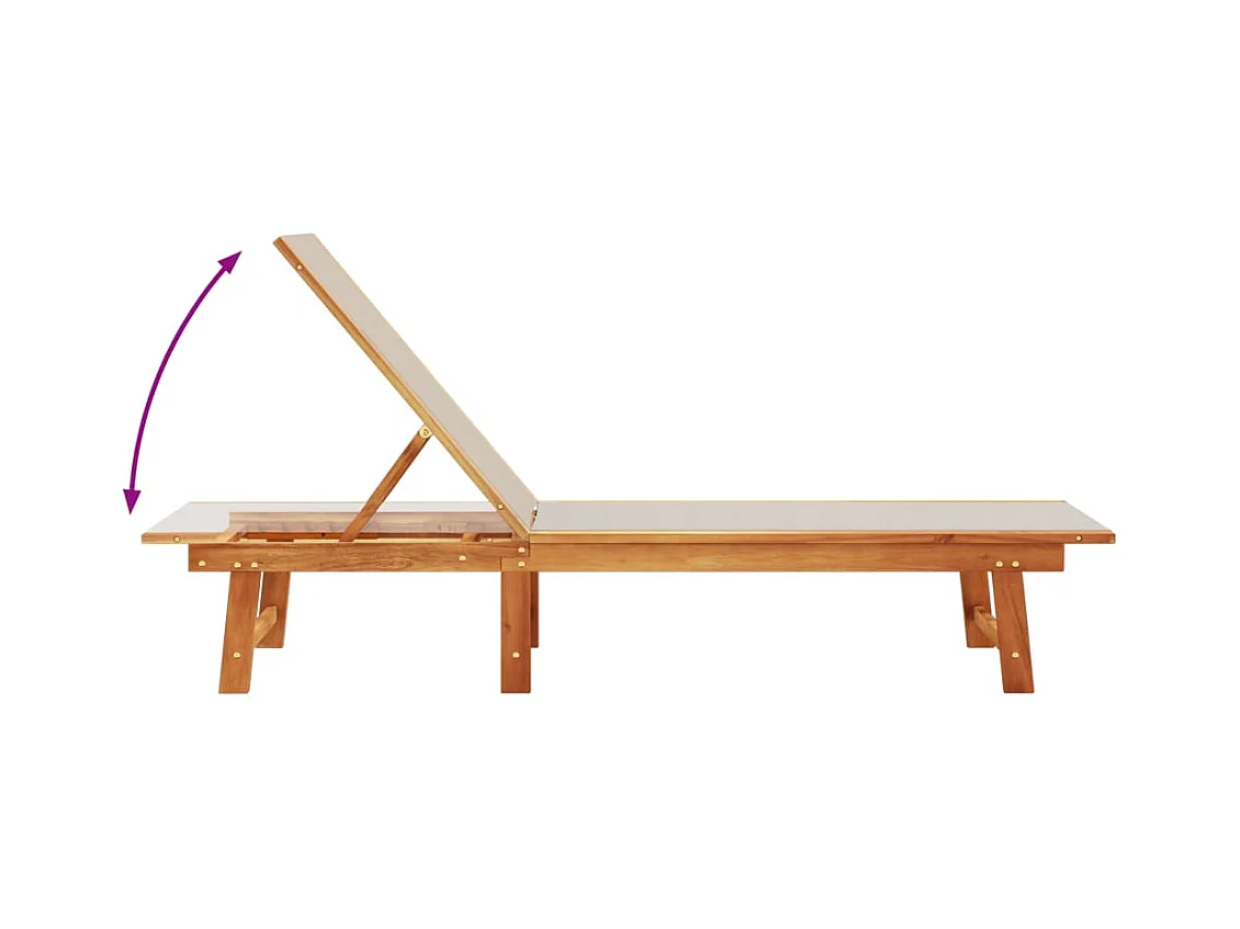 Taupe chaise longue gemaakt van massief acaciahout en textileen