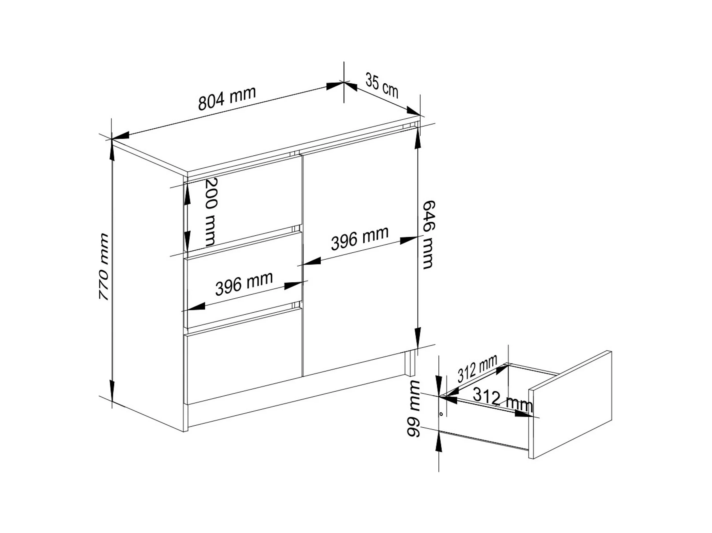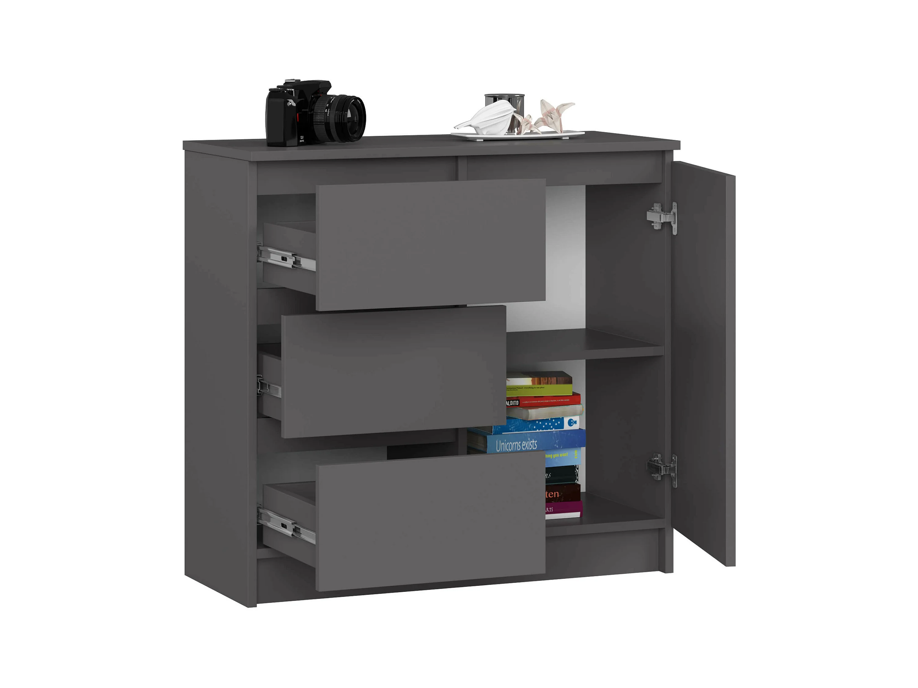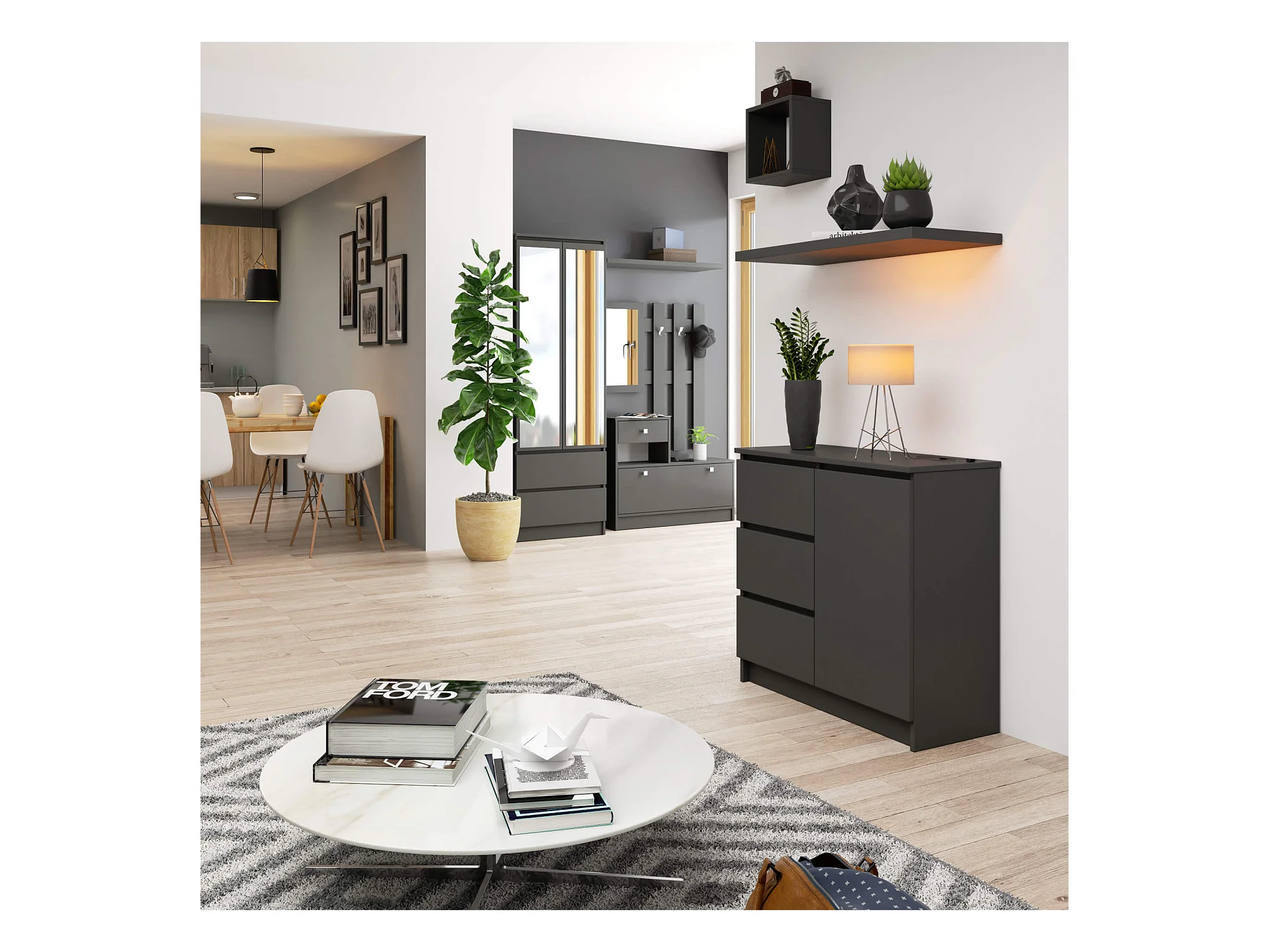 Grijze Grafiet Dressoir JERRY - 80cm Breed - 3 Lades & 1 Deur - Moderne Ontwerp voor Zelfmontage