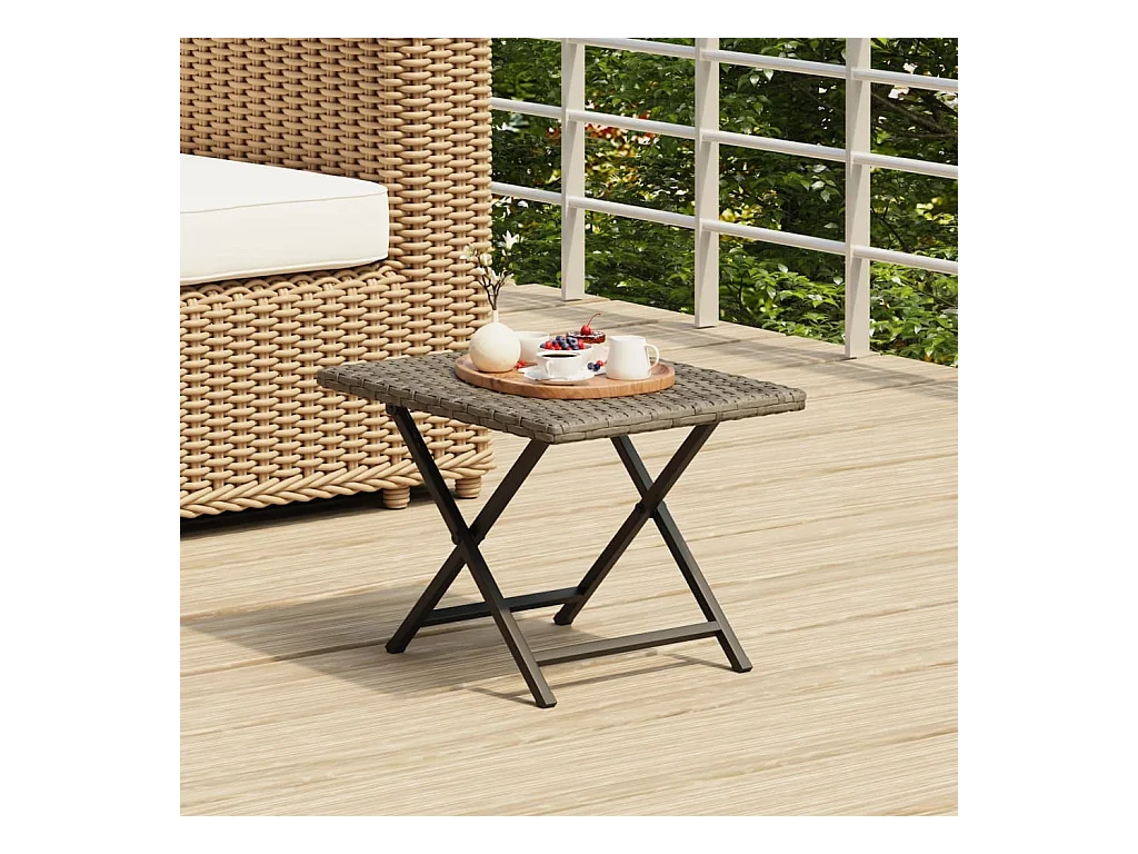 Grijze tuintafel 70x38x42 cm gevlochten hars en acaciahout