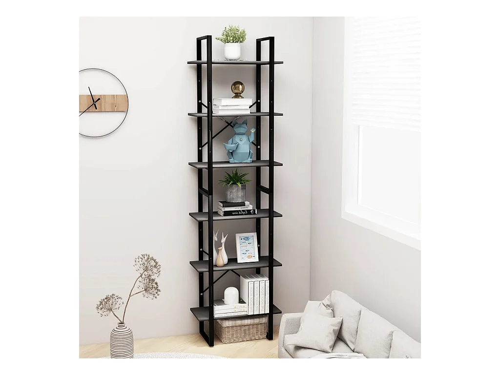 Boekenkast met 5 niveaus Grijs 60x30x175 cm Dennenhout