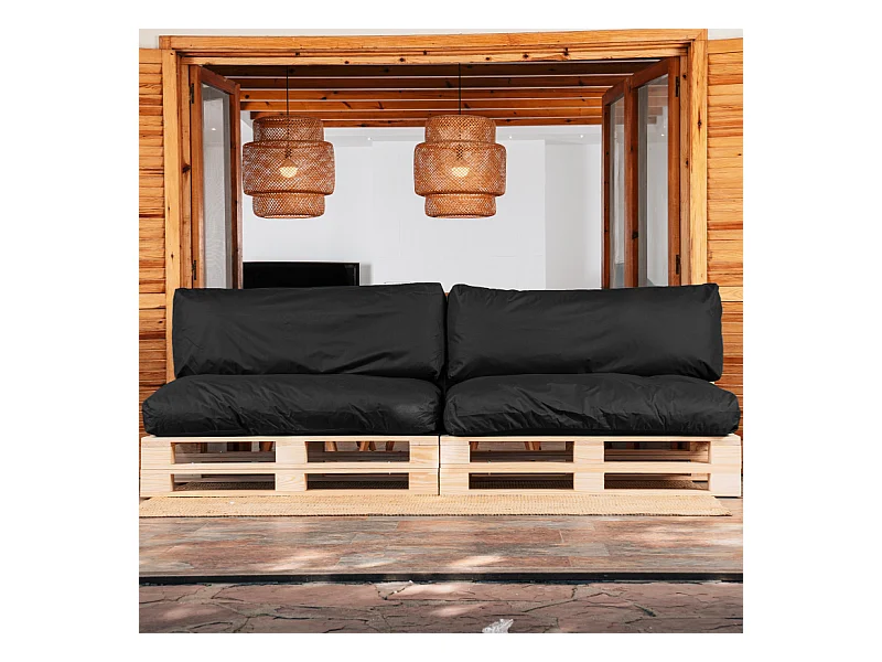Zwart polyester pallet kussens afneembaar lot x2 BANANAIR 120x80cm/120x40cm