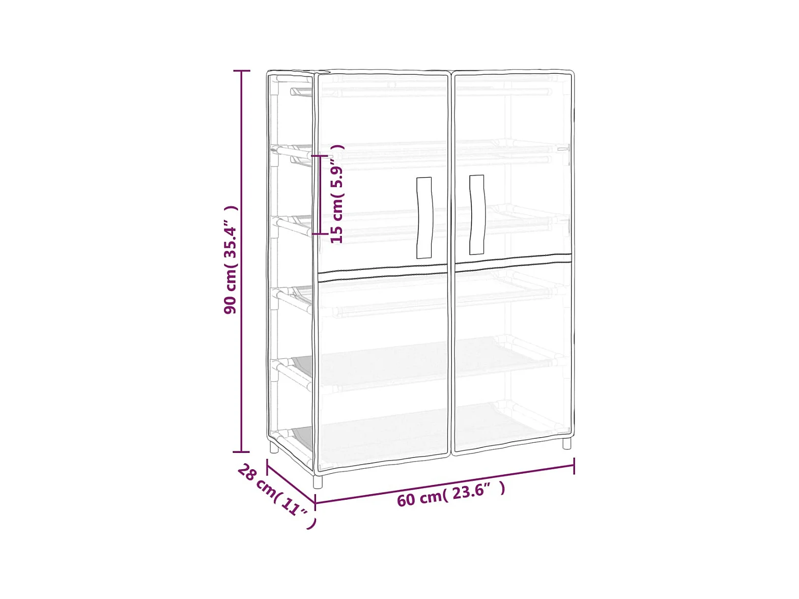 Grijze schoenenkast 60x28x90 cm Stof