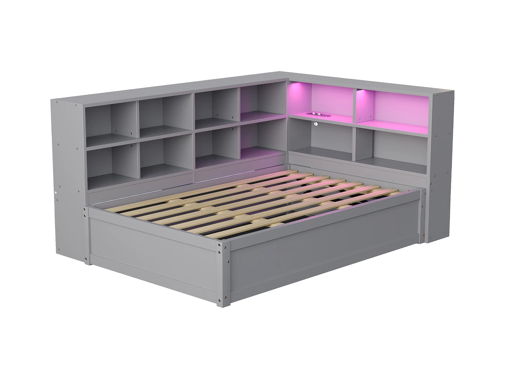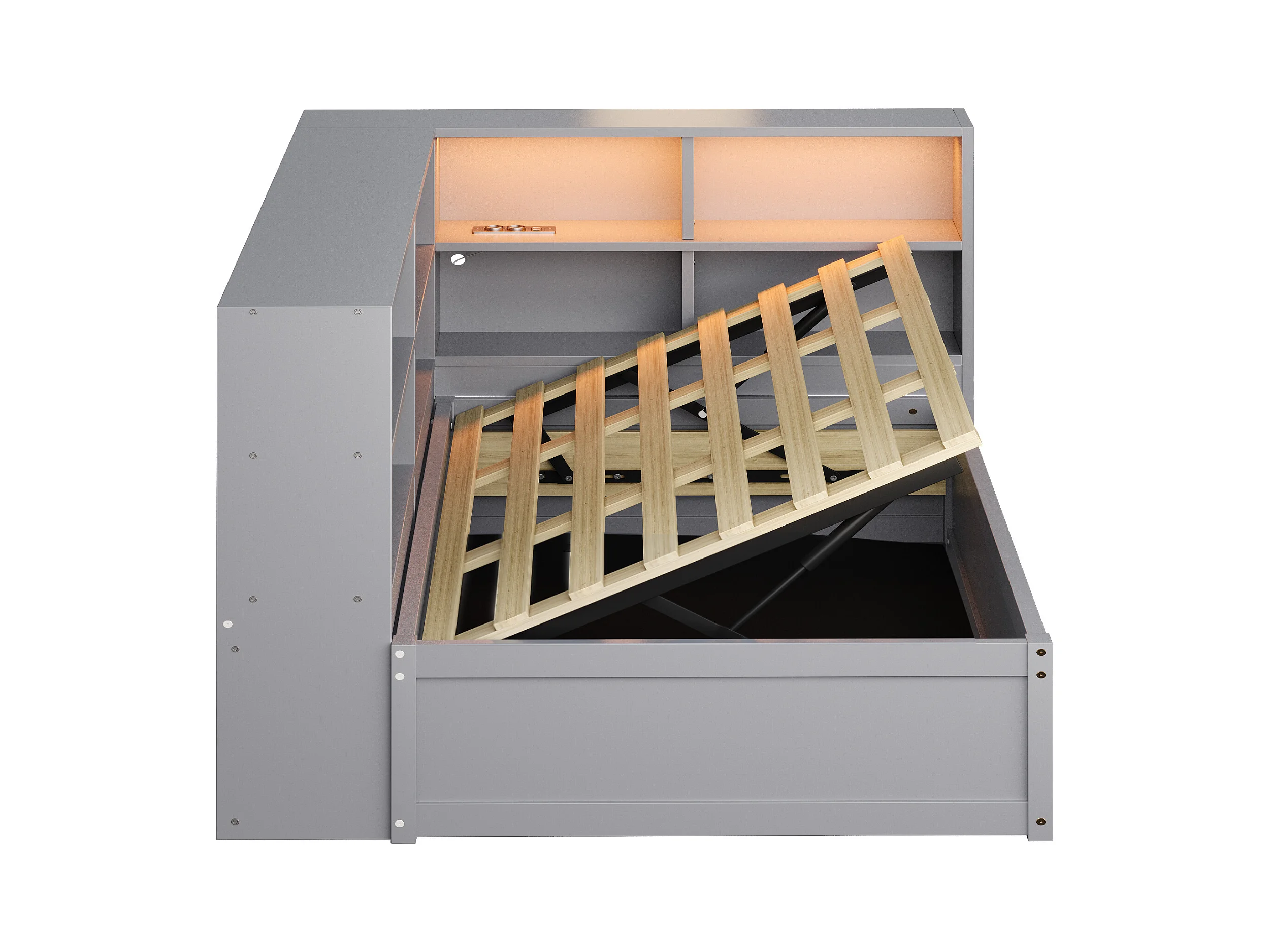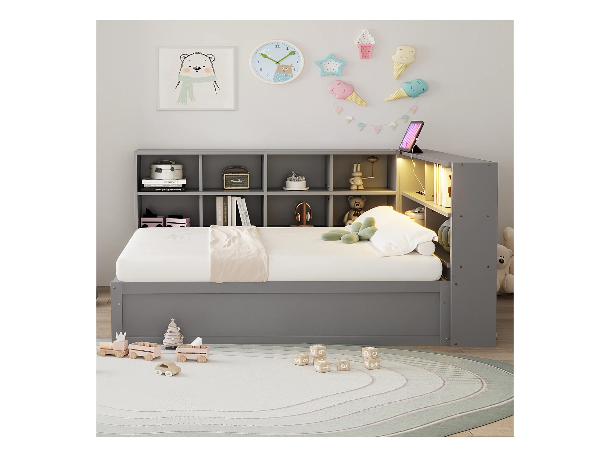 Opbergbed 90x200 cm - Met stopcontact - Met opbergvak - Met LED-verlichting - Grijs (zonder matras)