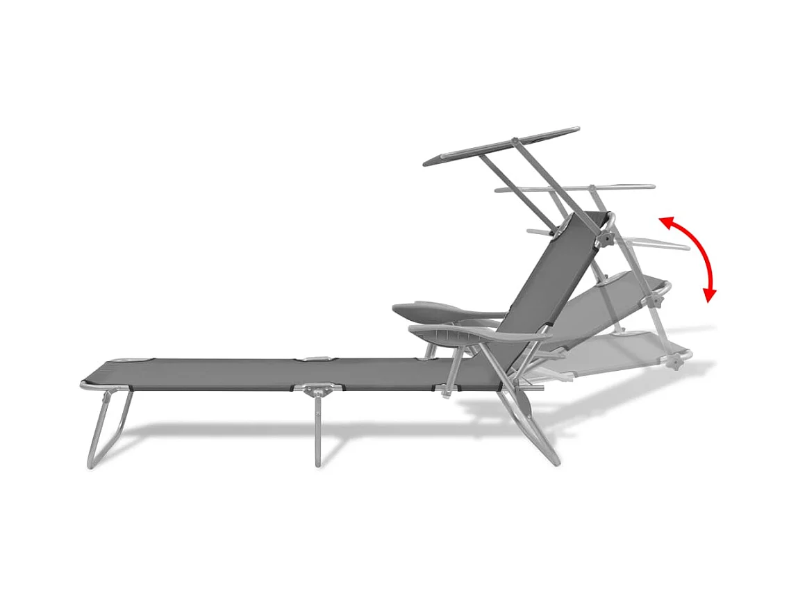 Grijze stalen ligstoel met luifel