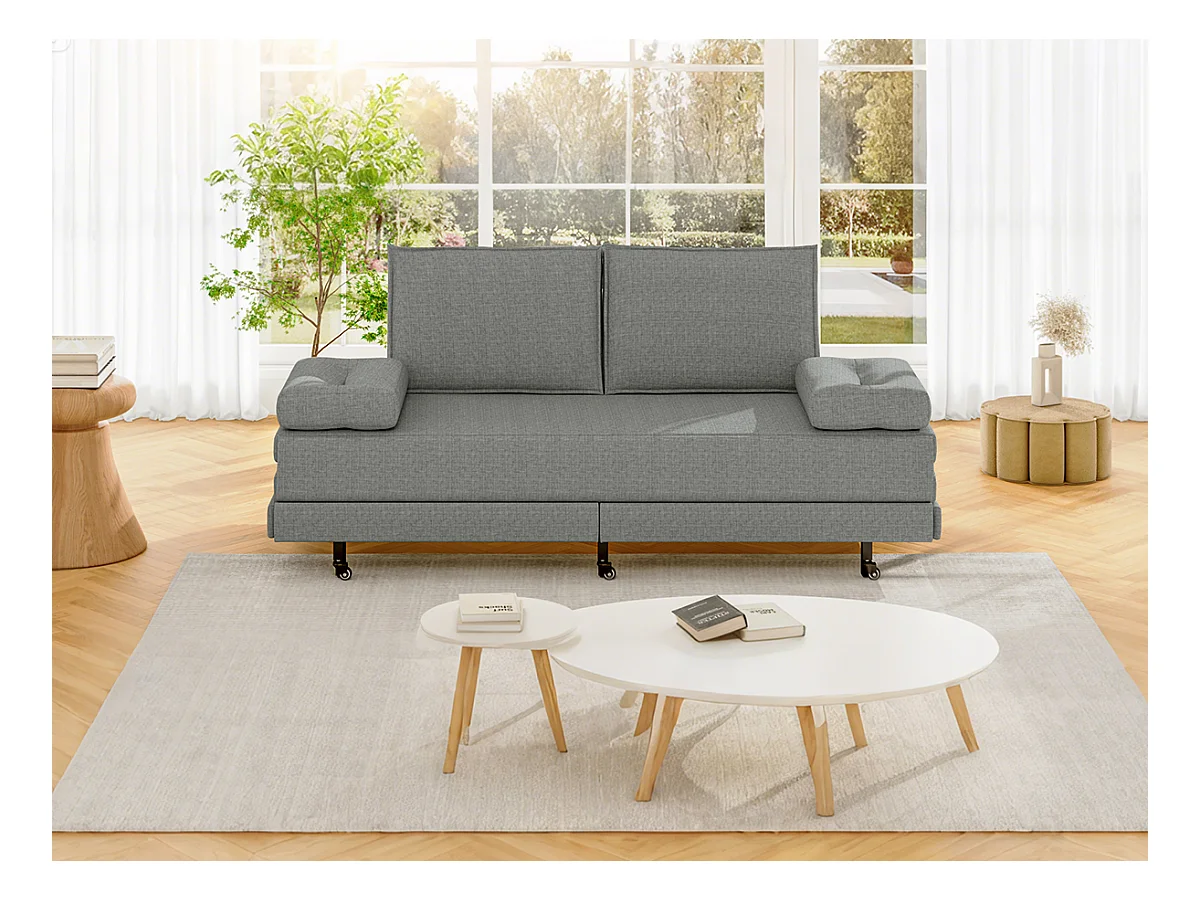 Grijze stoffen slaapbank 90x200 cm, uitschuifbaar tot 180x200 cm, opvouwbaar en praktisch om ruimte te besparen