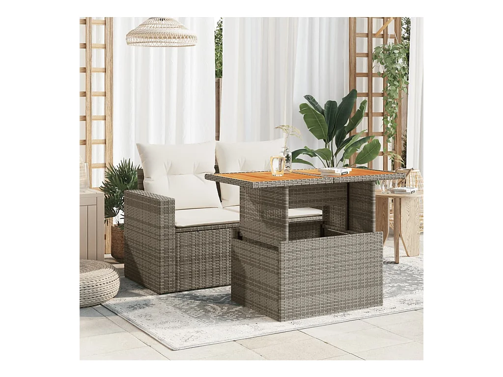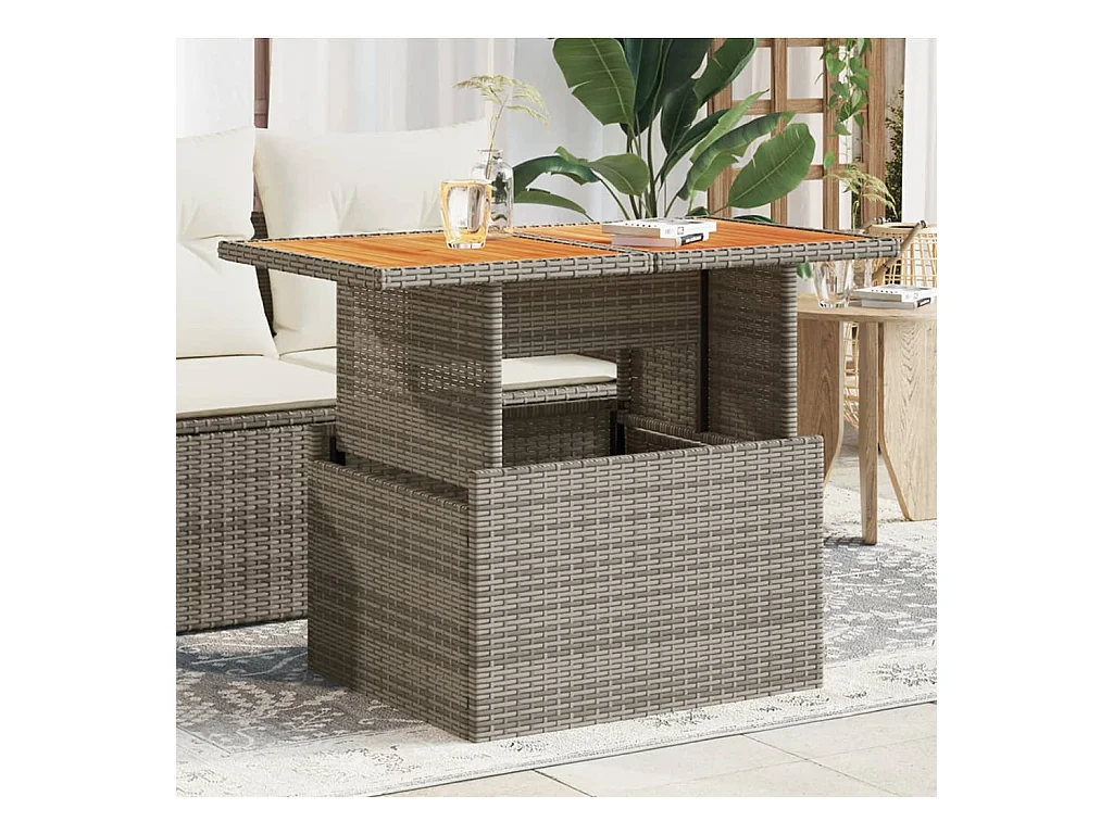 Grijze tuintafel 100x55x73 cm gevlochten hars en acaciahout