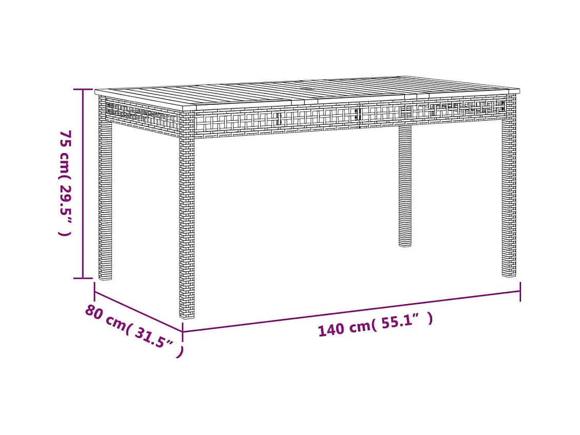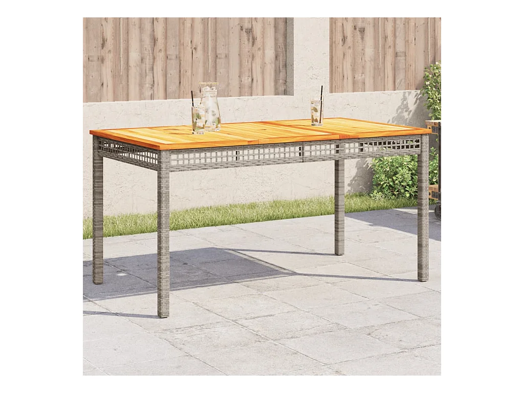 Grijze tuintafel 140x80x75 cm gevlochten hars en acaciahout