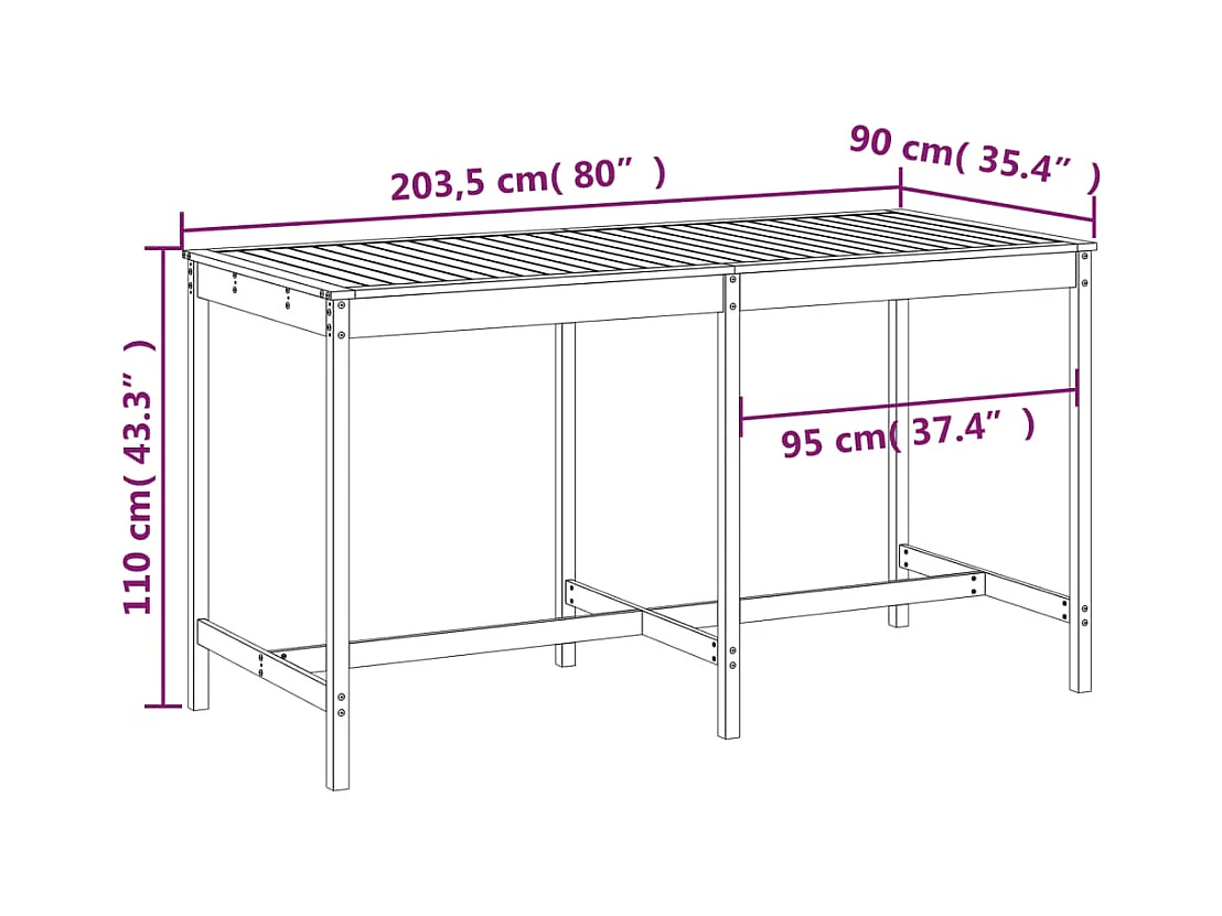 Grijze tuintafel 203,5x90x110 cm massief grenenhout