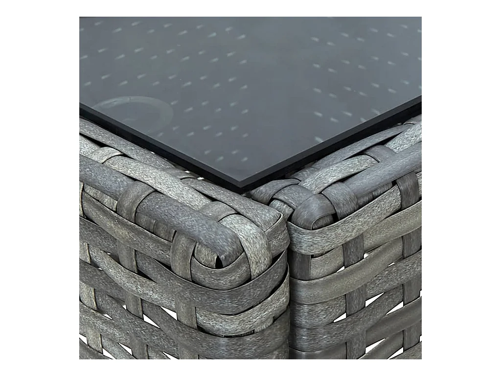 Tuintafel met glazen blad, grijs, 90x90x75 cm, gevlochten hars
