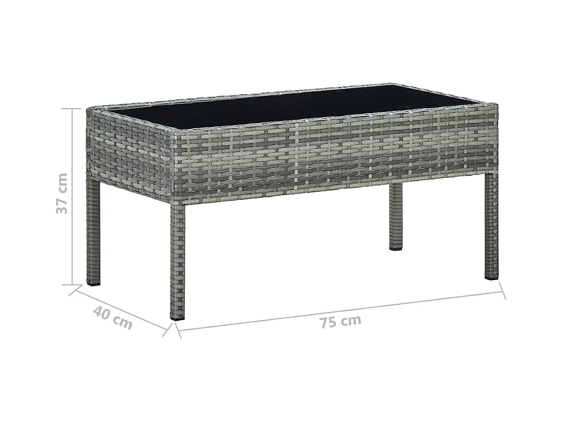 Rechthoekige tuinsalontafel grijs 80x40x37 cm rotan