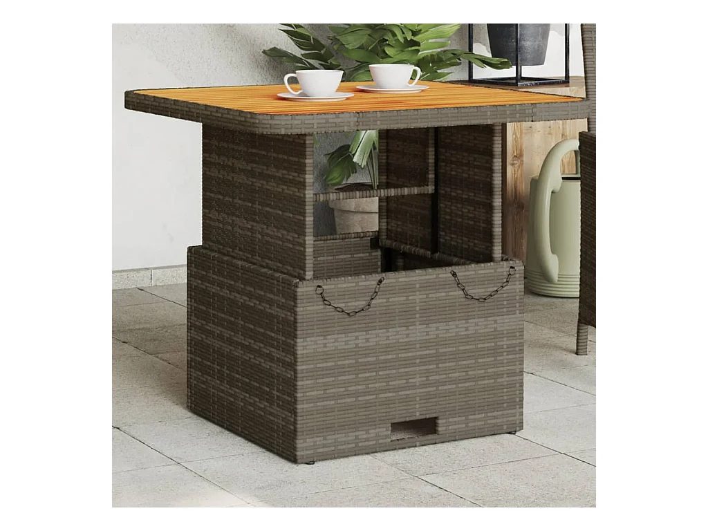 Grijze tuintafel 80x80x71 cm gevlochten hars en acaciahout