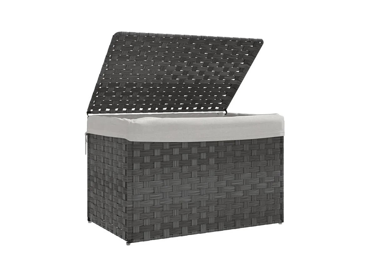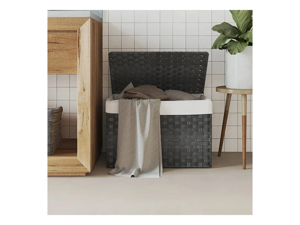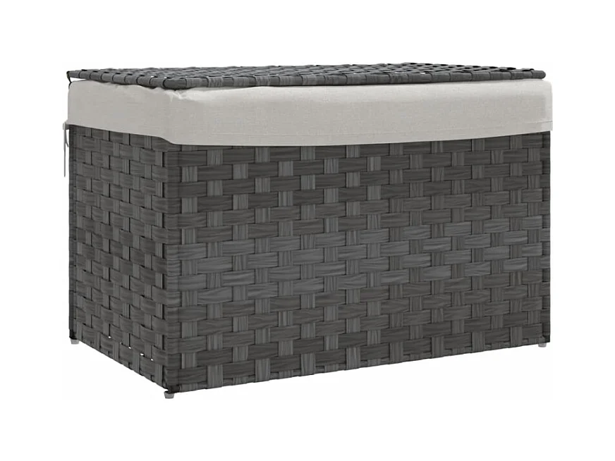Grijze Wasmand van Gevlochten Hars 55,5x35x34 cm met Deksel en Verwijderbare Zak
