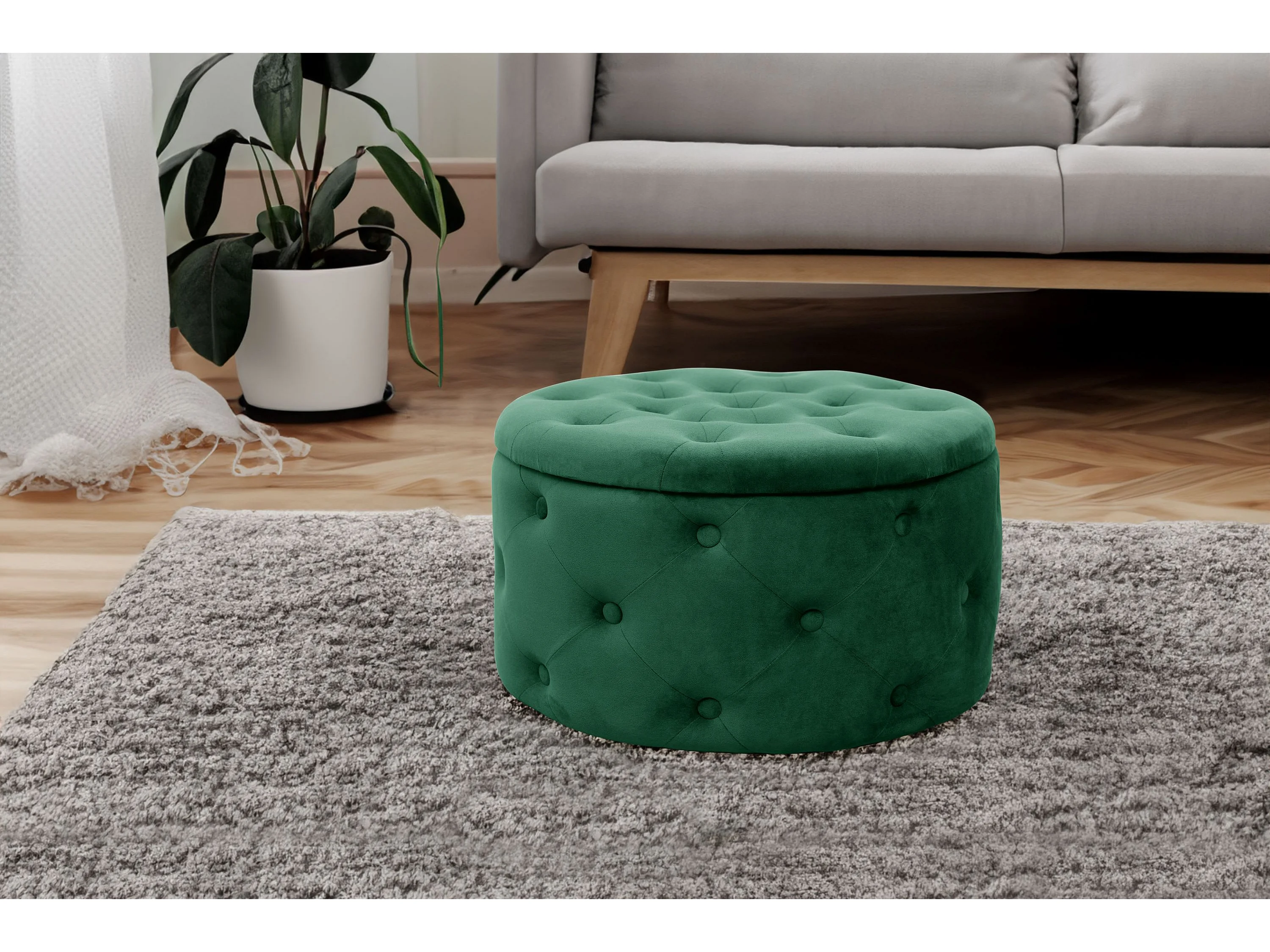 Groene Fluwelen Opbergpoef Alia - Ronde Zithoogte 30cm