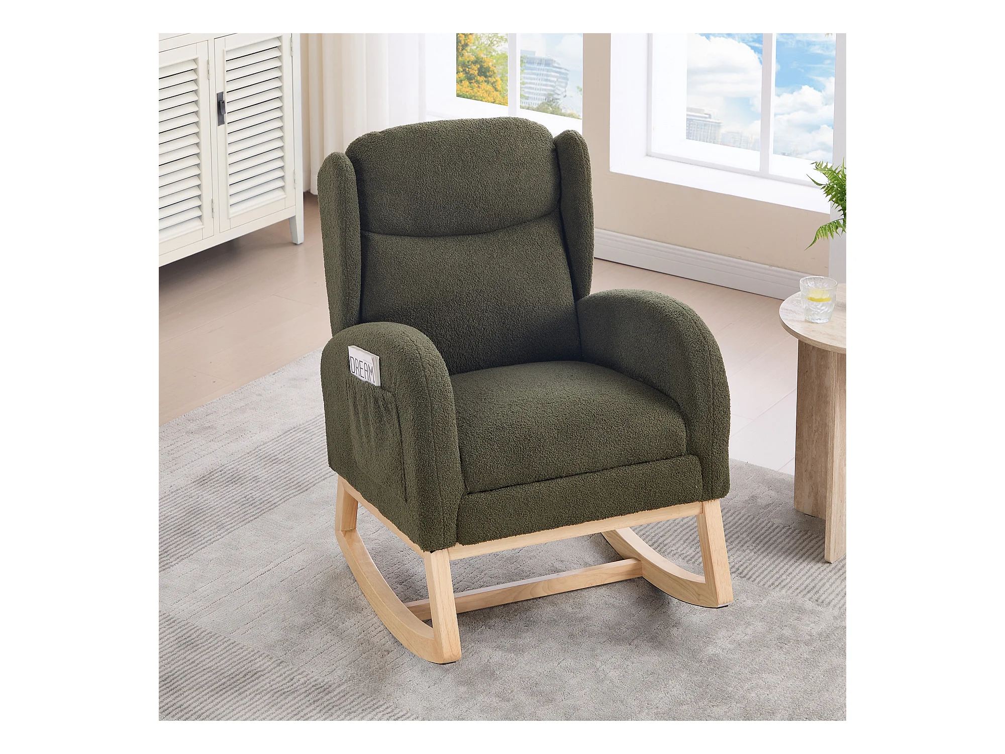 Fluwelen schommelstoel met lendensteun, schommelstoel voor de woonkamer, kinderkamer, donkergroen