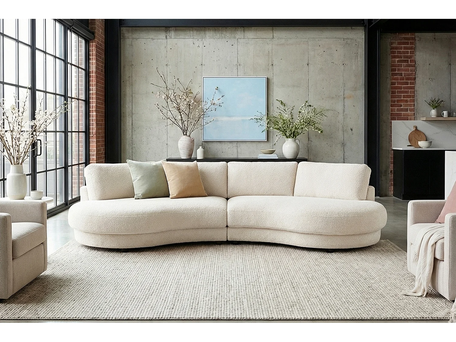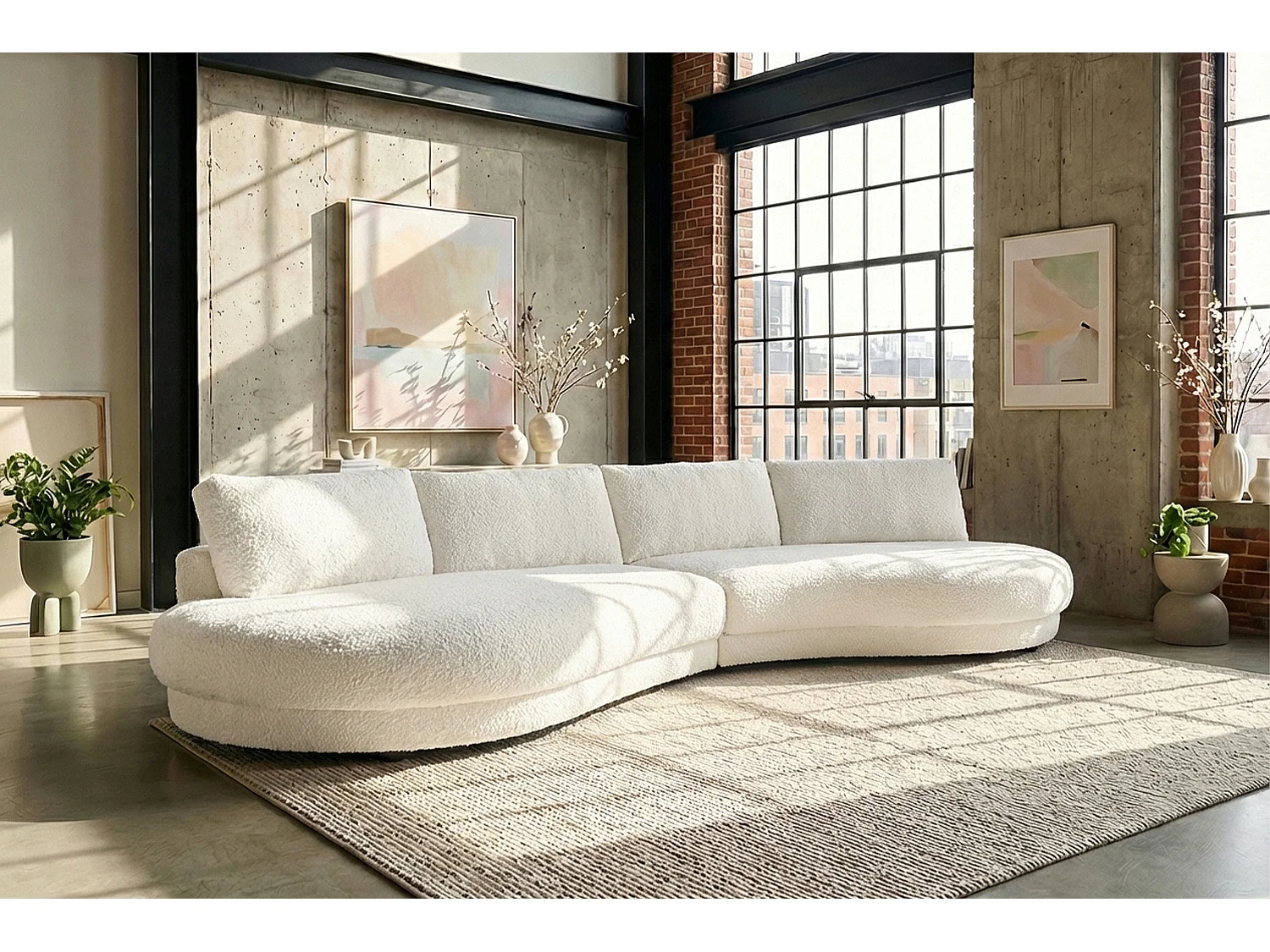 Grote bank - Wit Plat geweven stof - PADANA