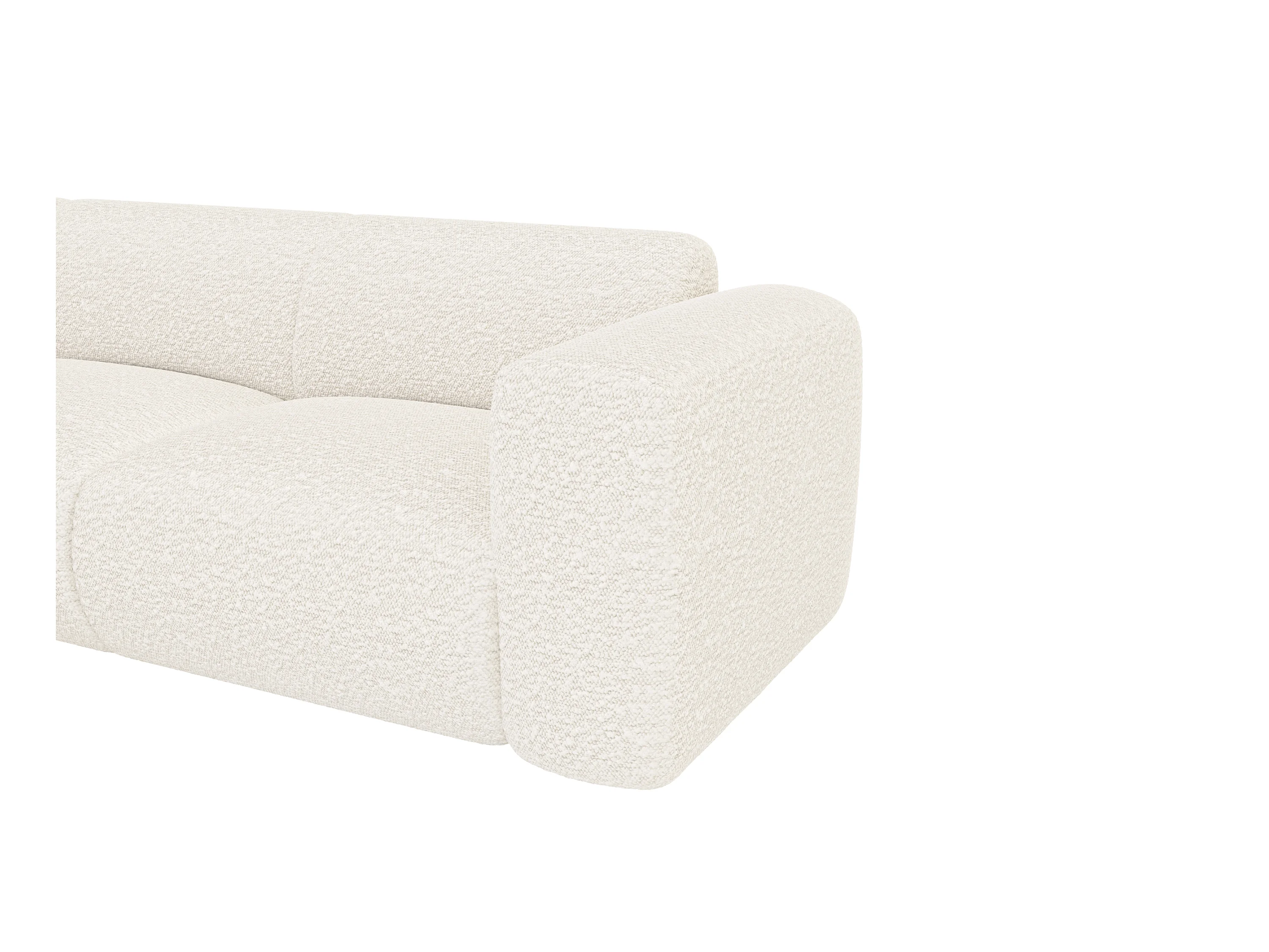 Grote hoekbank met hoek links met rugleuning aan de meridienne van witte boucléstof POGNI van Maison Céphy