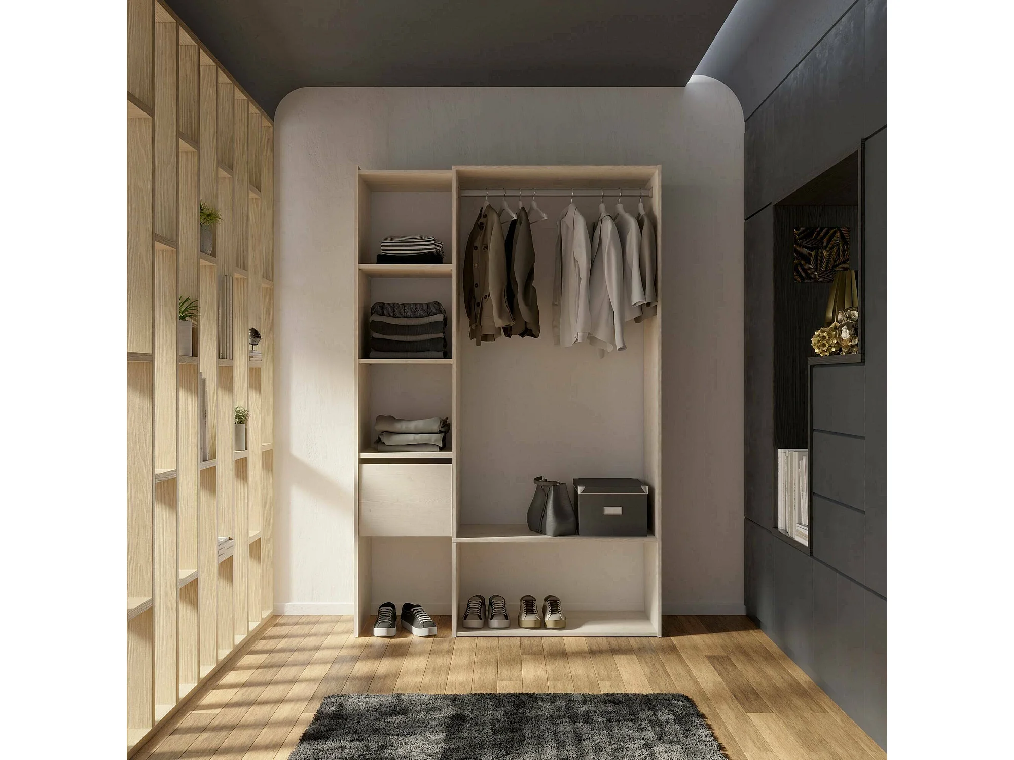 Grote kledingkast, Slaapkamermeubel, Inloopkast, Kledingkast, 119x40 h183 cm, Eiken