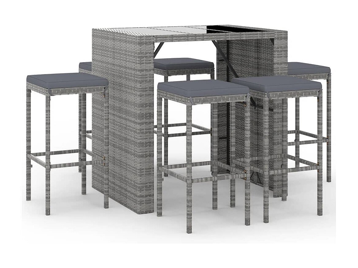 Grylin 7-delige Tuinbarset met kussens poly rattan grijs