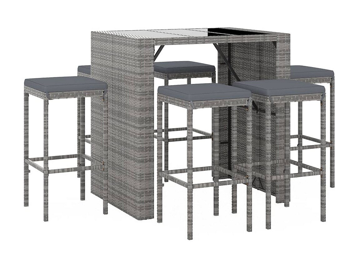 Danick 7-delige Tuinbarset met kussens poly rattan grijs