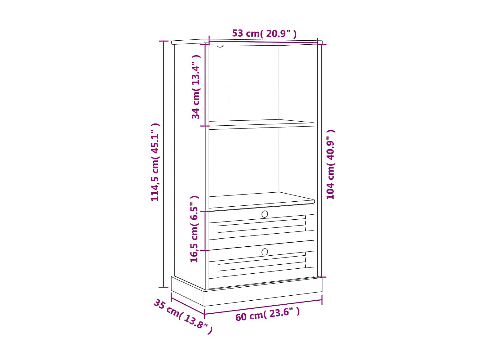 Gudvord Boekenkast VIGO 60x35x114,5 cm massief grenenhout