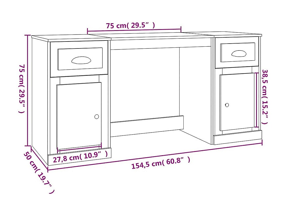 Samantha Bureau met bijzetkast bewerkt hout grijs sonoma eikenkleurig