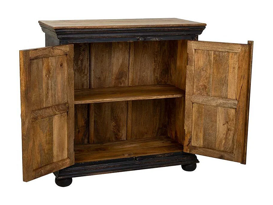 Hal van hout, glas en metaal met handgemaakte afwerking en 2 deuren.