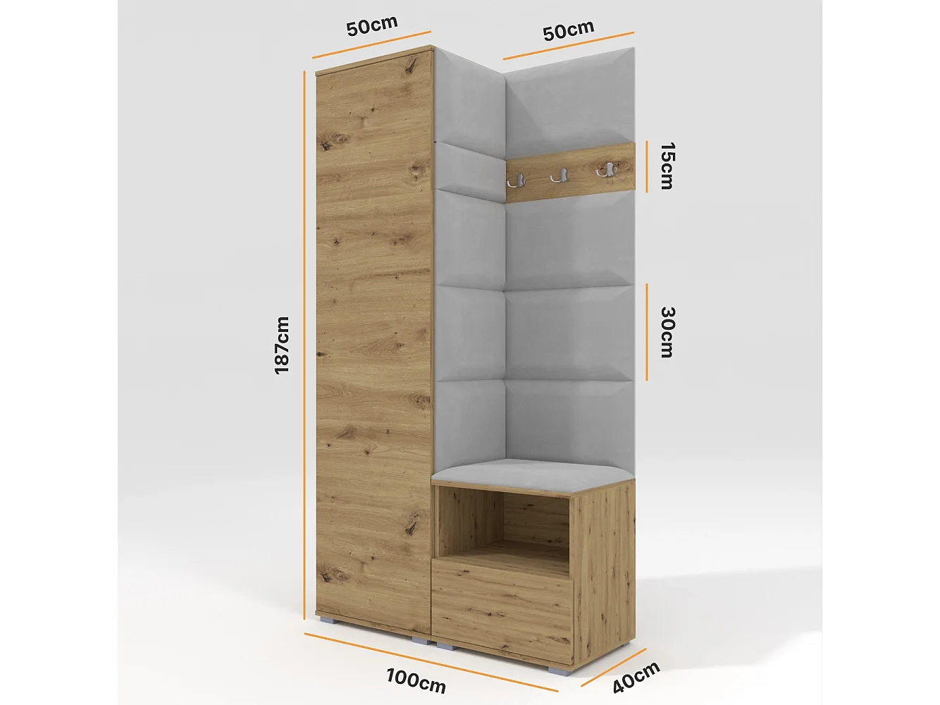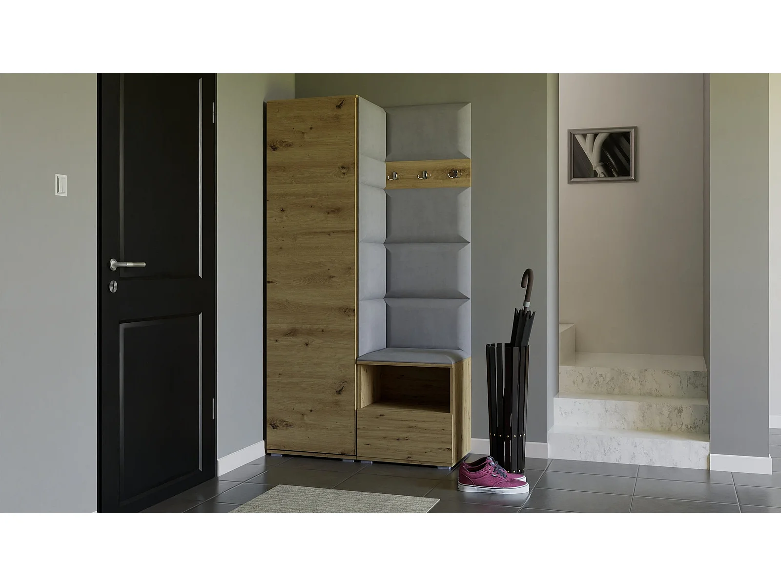 Halcombinatie Nela I - 100 cm - Artisan Eiken - Trinity 32 - Lichtgrijs