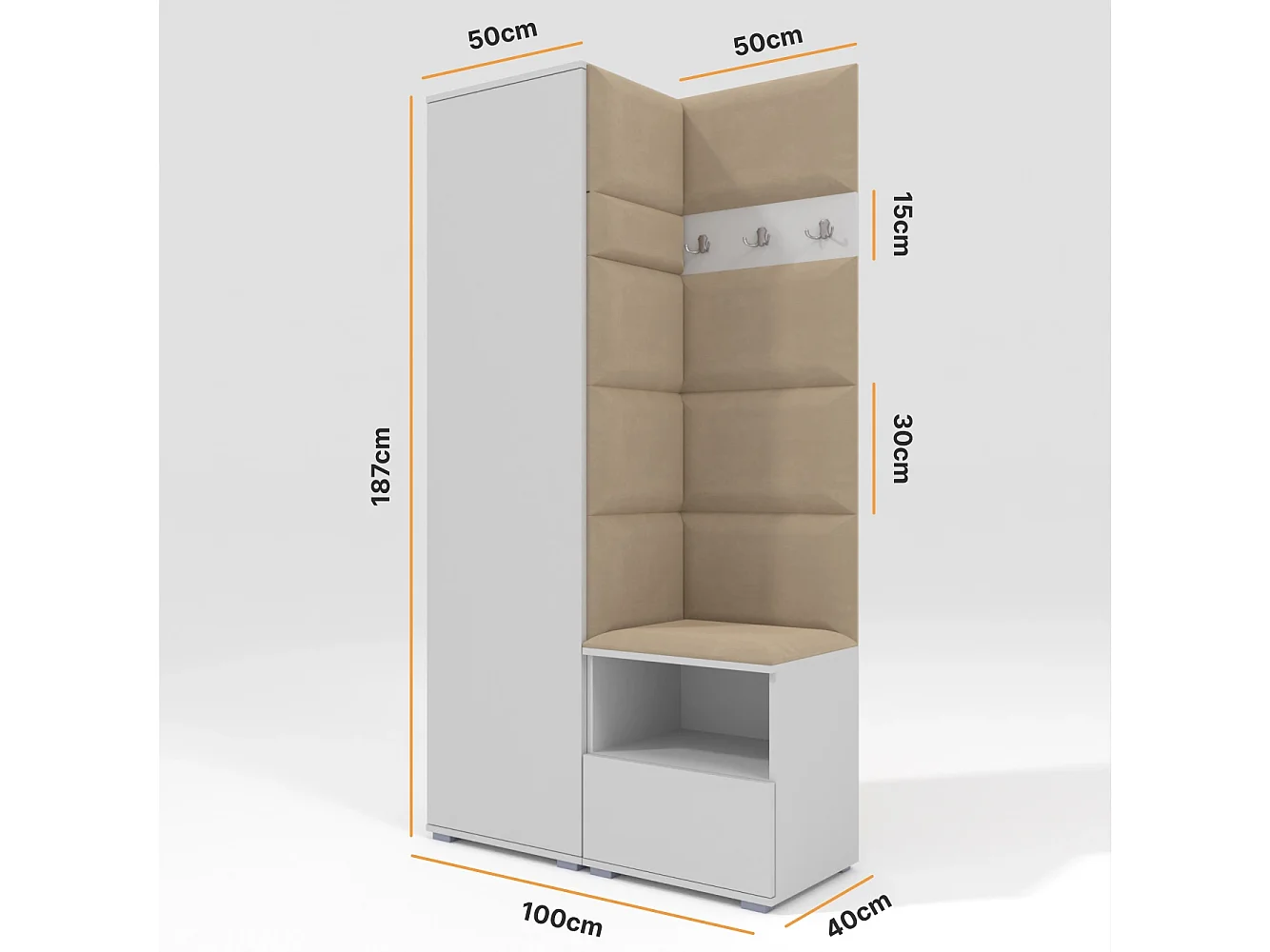 Halcombinatie Nela I - 100 cm - Mat Wit - Trinity 04 - Beige