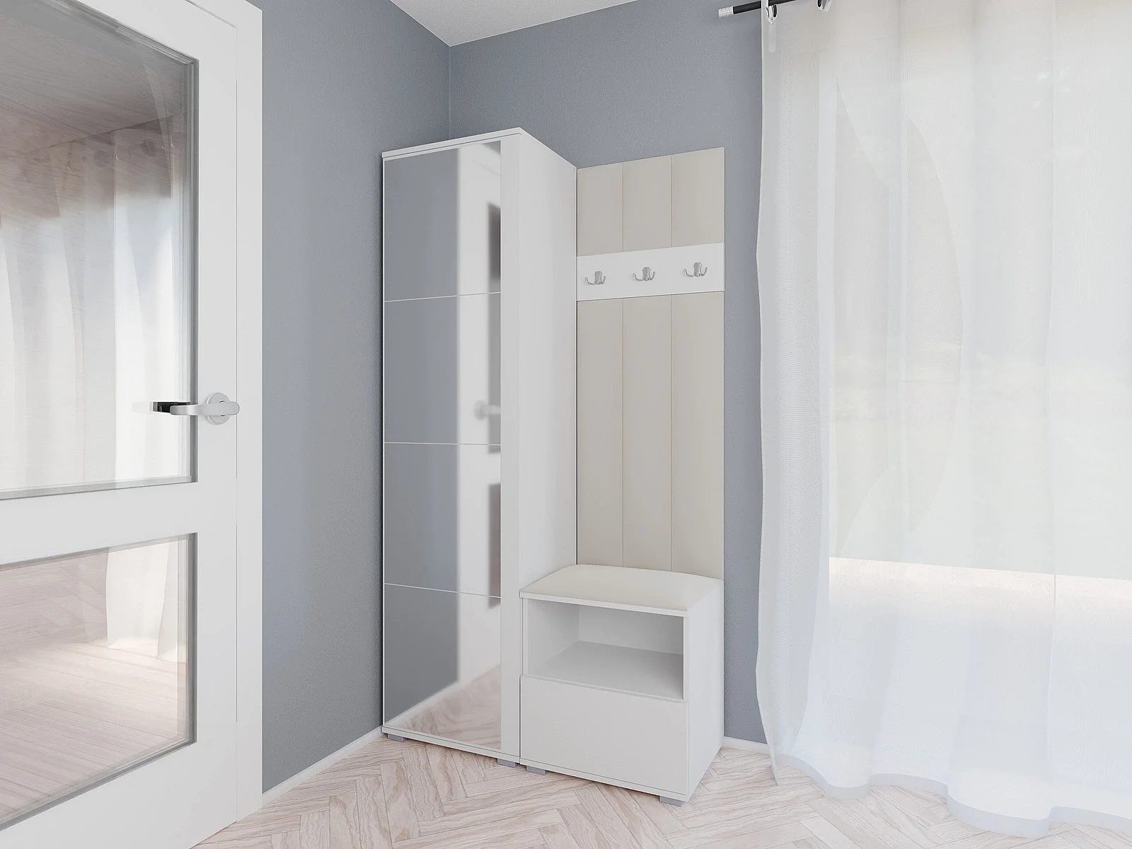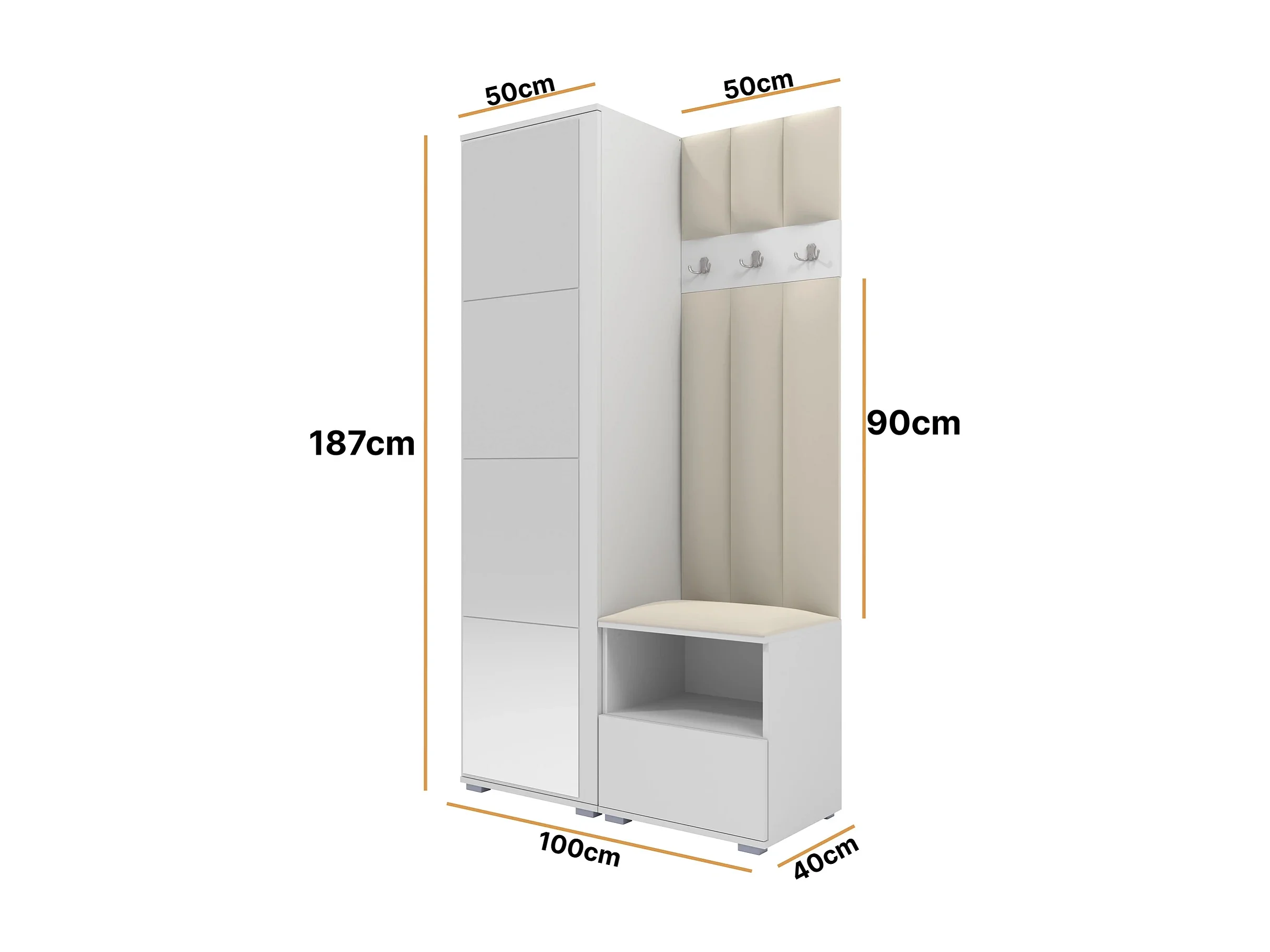 Halcombinatie Nela I LUX met spiegel - 100 cm - Mat Wit - Trinity 01 - Crème