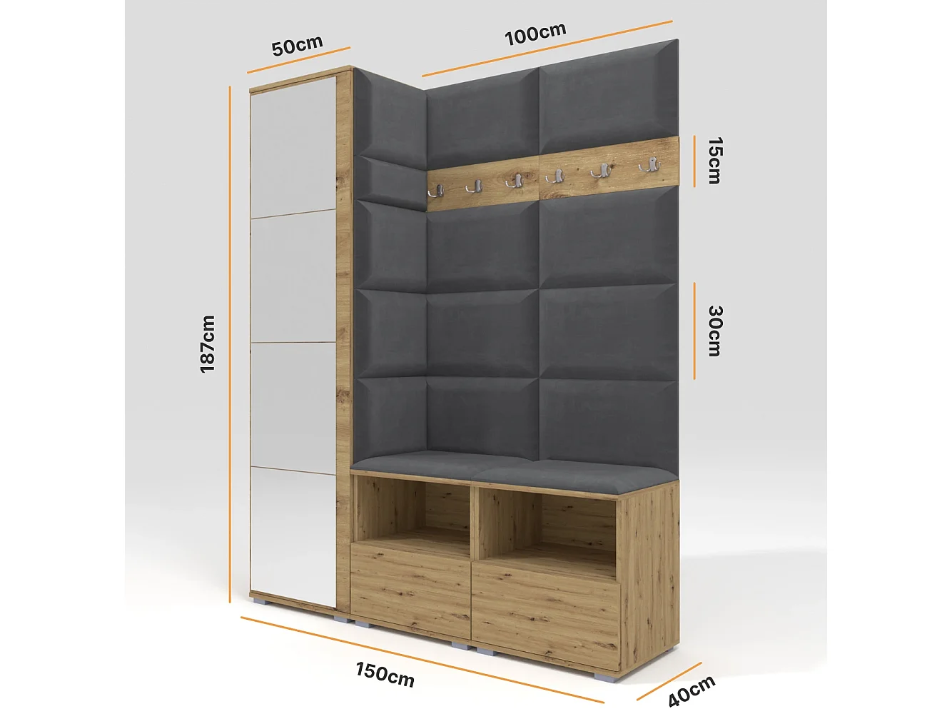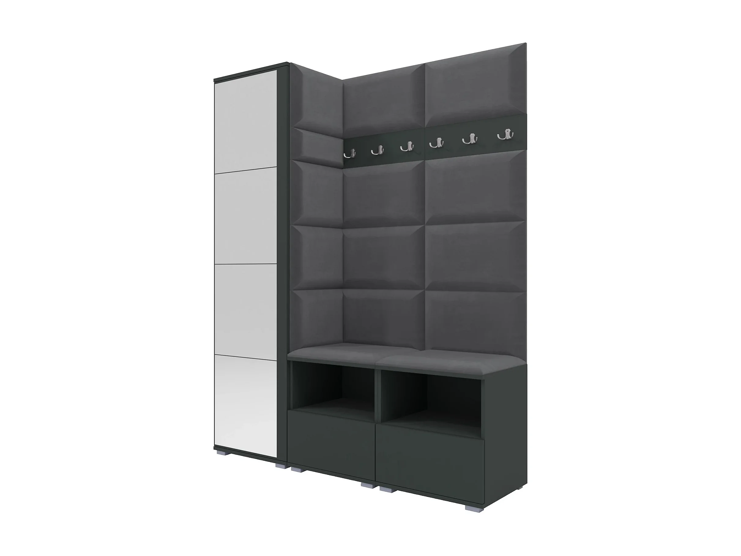 Halcombinatie Nela II met spiegel - 150 cm - Grafiet - Trinity 15 - Donkergrijs