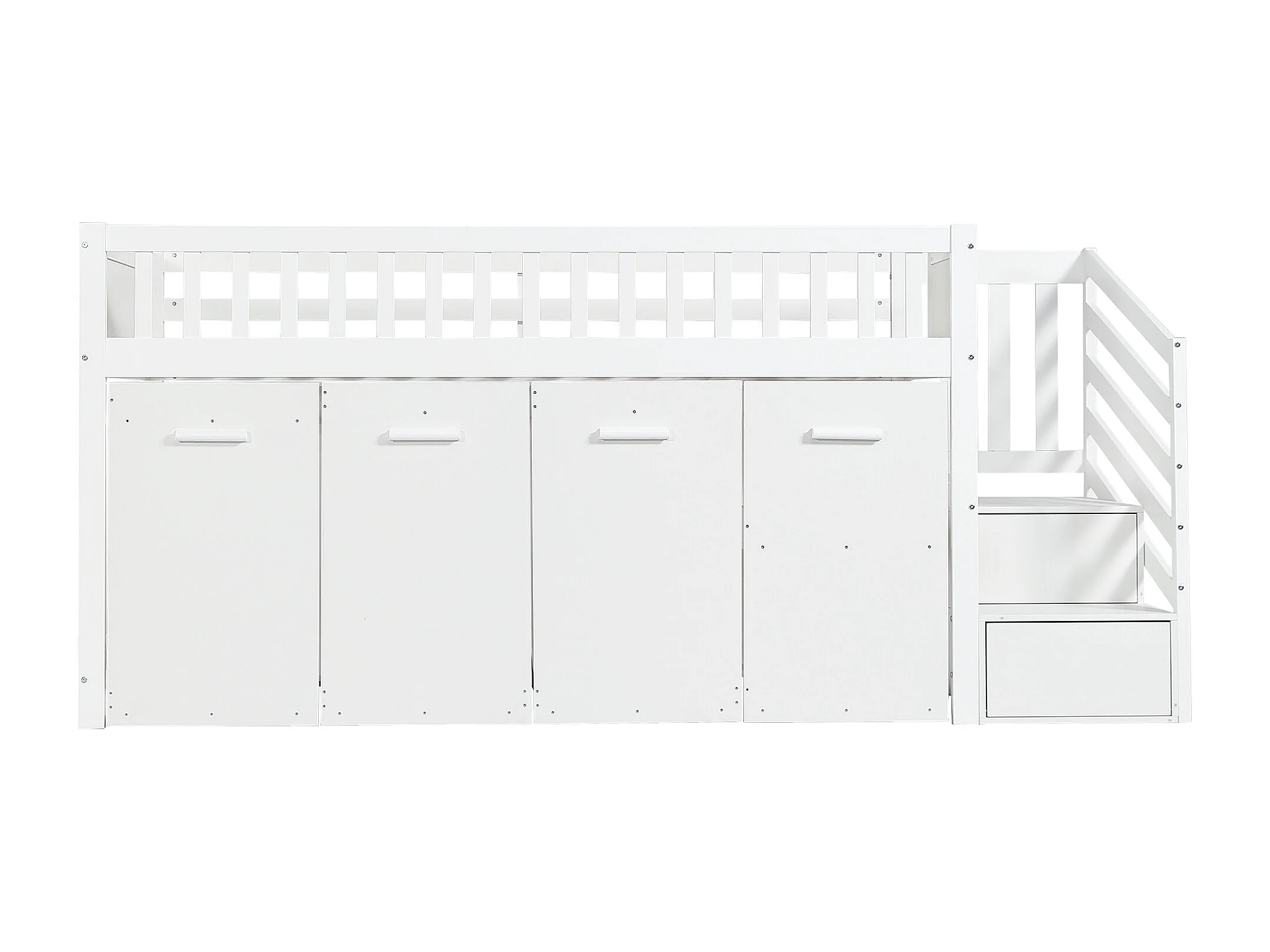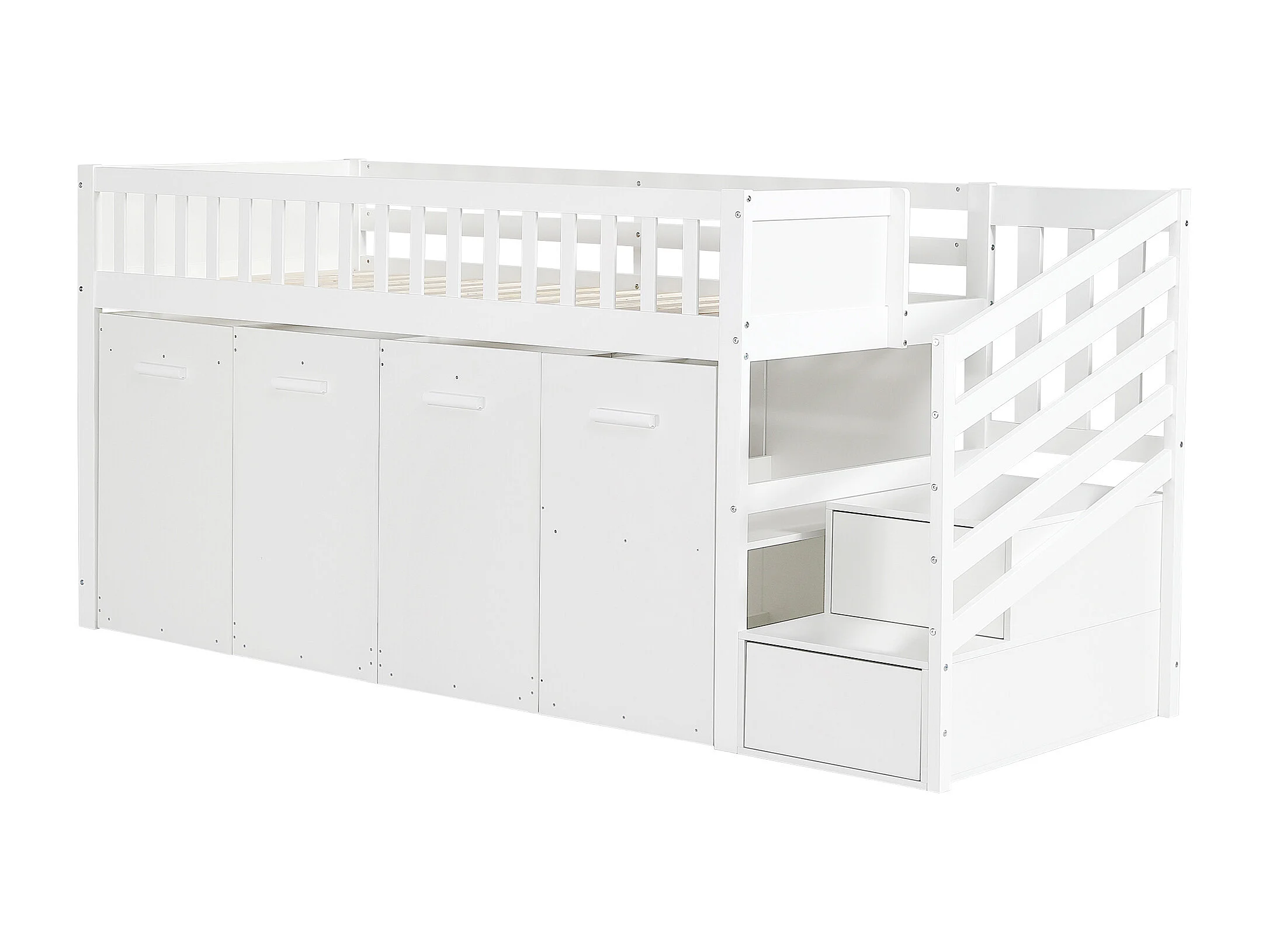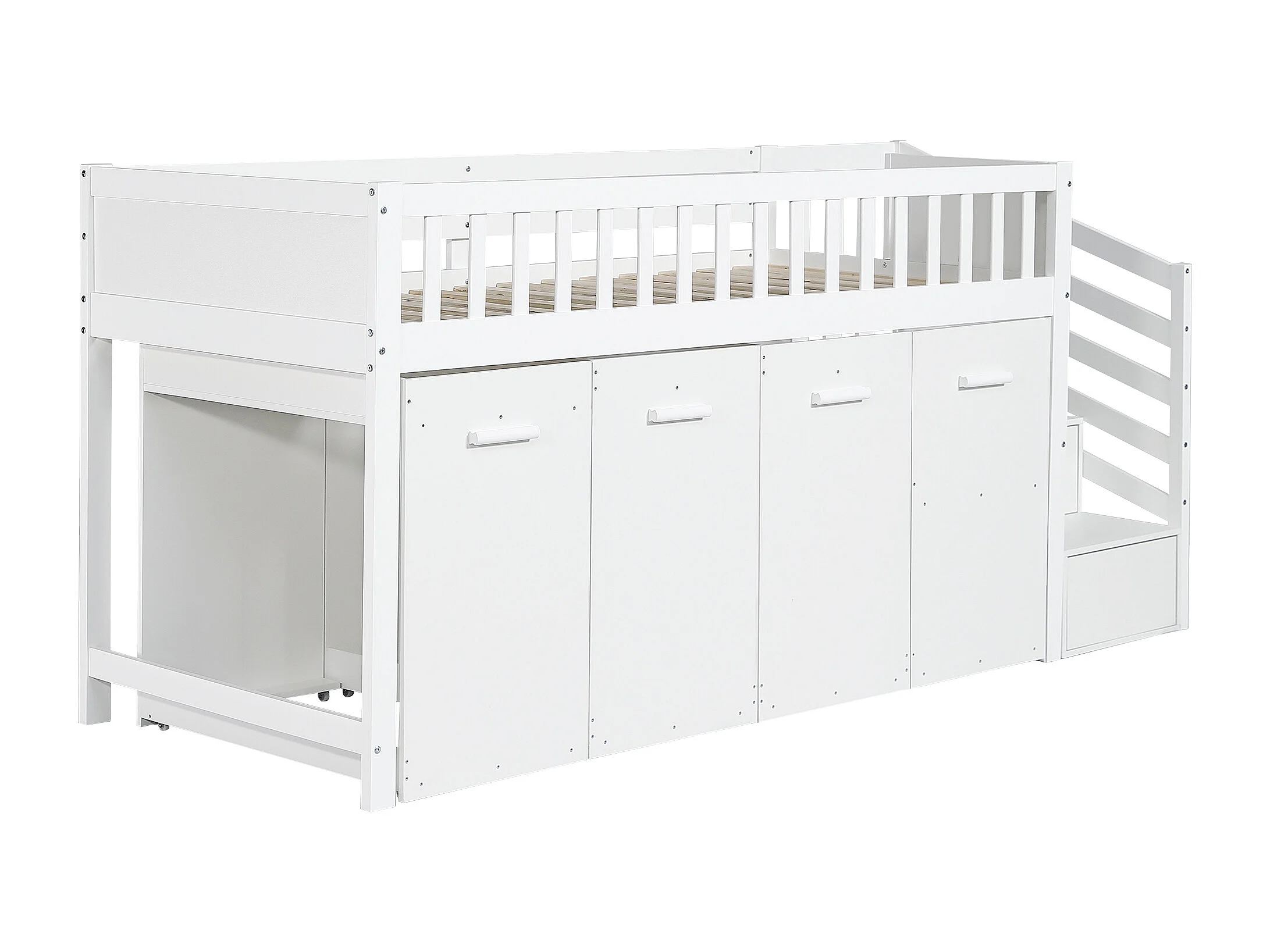 Halfhoog bed 90x200cm met bureau, kledingkast en opbergruimte - Dennenhout en MDF-hout - wit