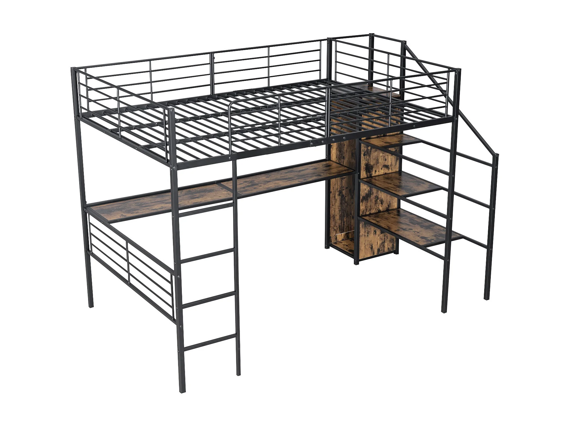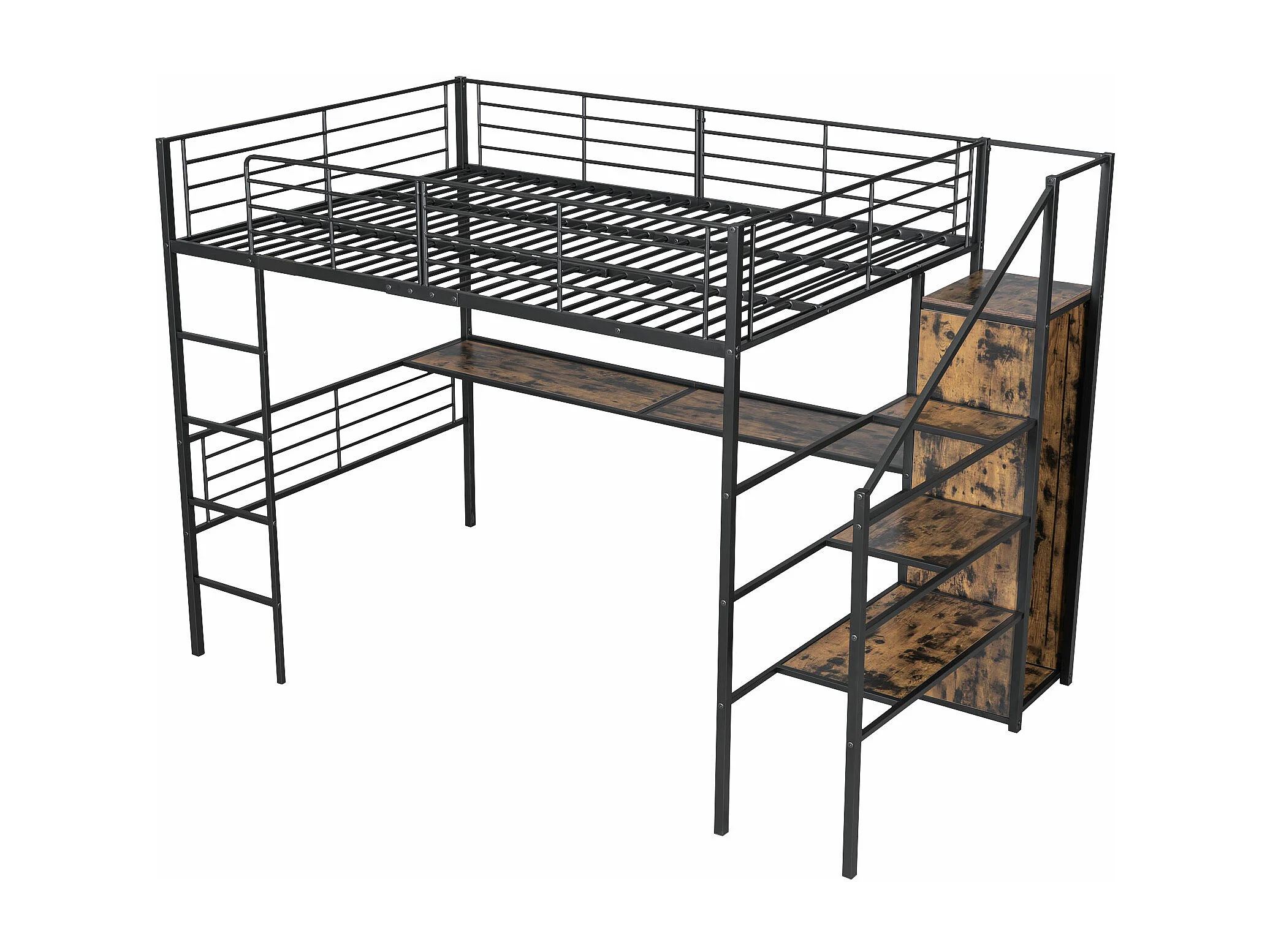 Halfhoogslaper 140x200 cm met bureau – Zwart metalen frame (zonder matras)