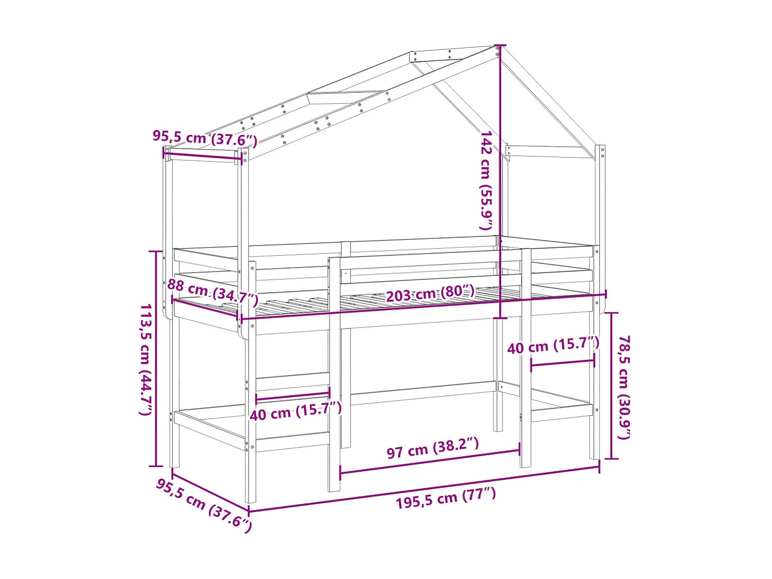 Halfhoogslaper met ladder en bedhuis grenenhout 90x190 cm