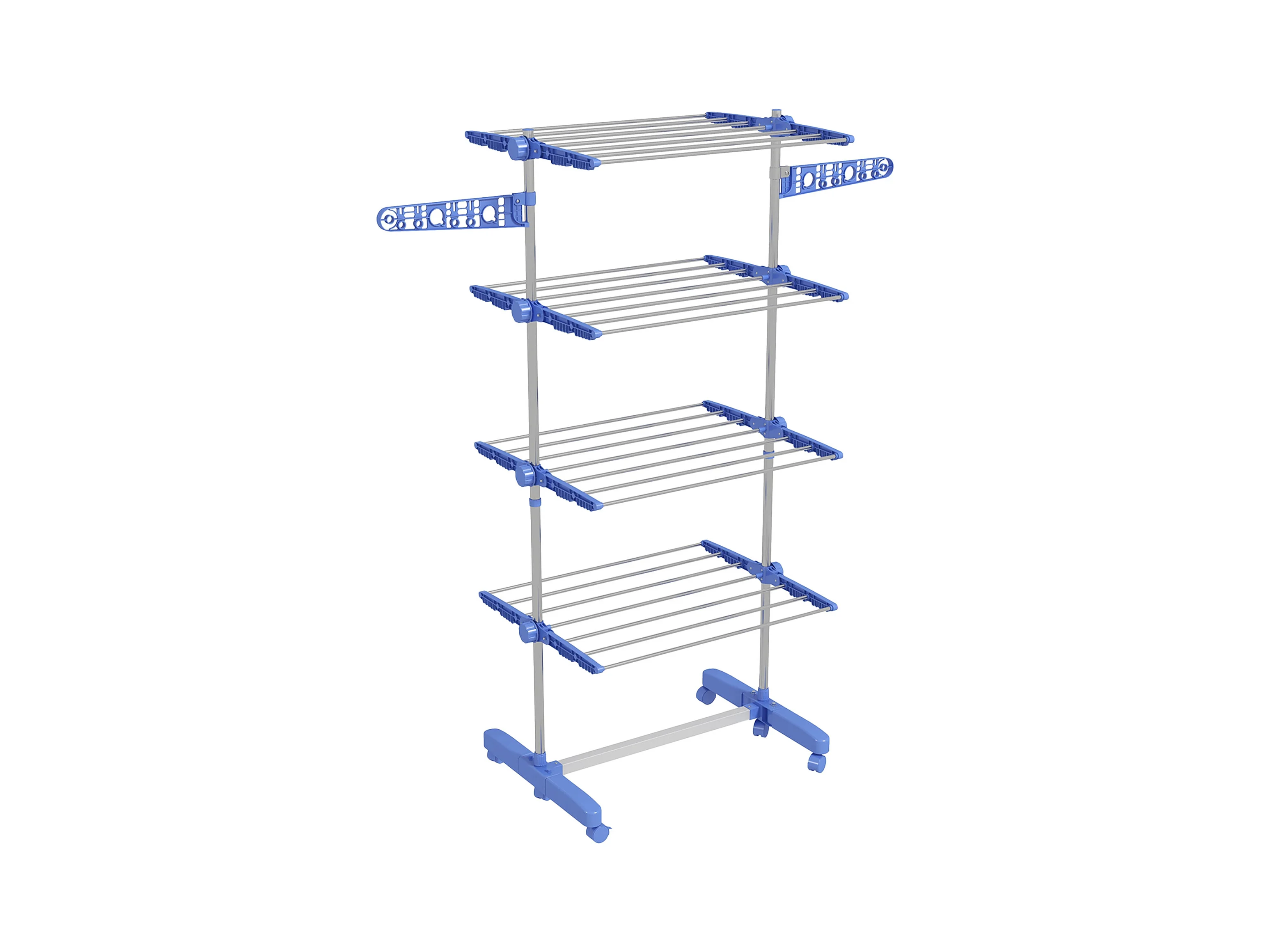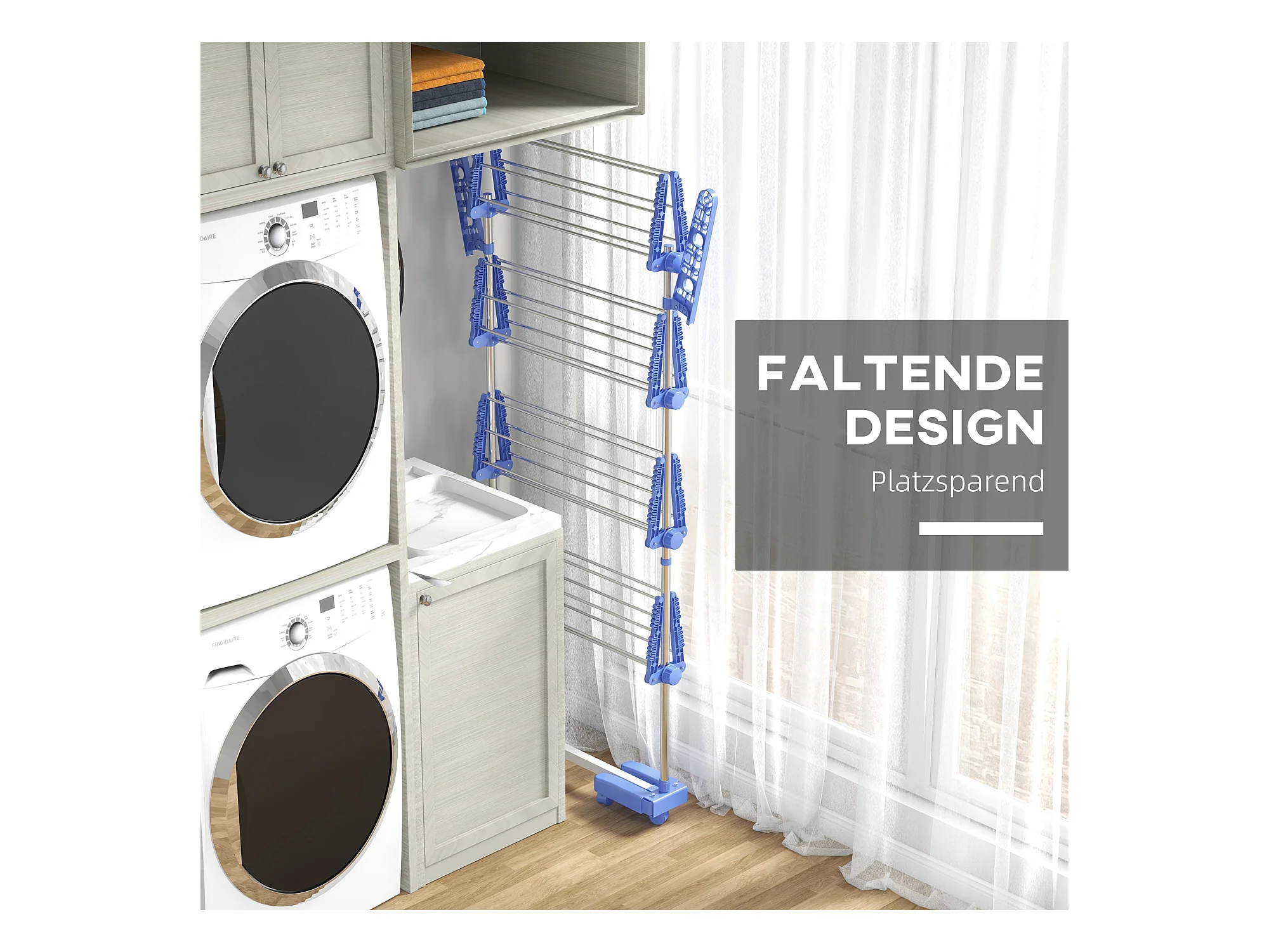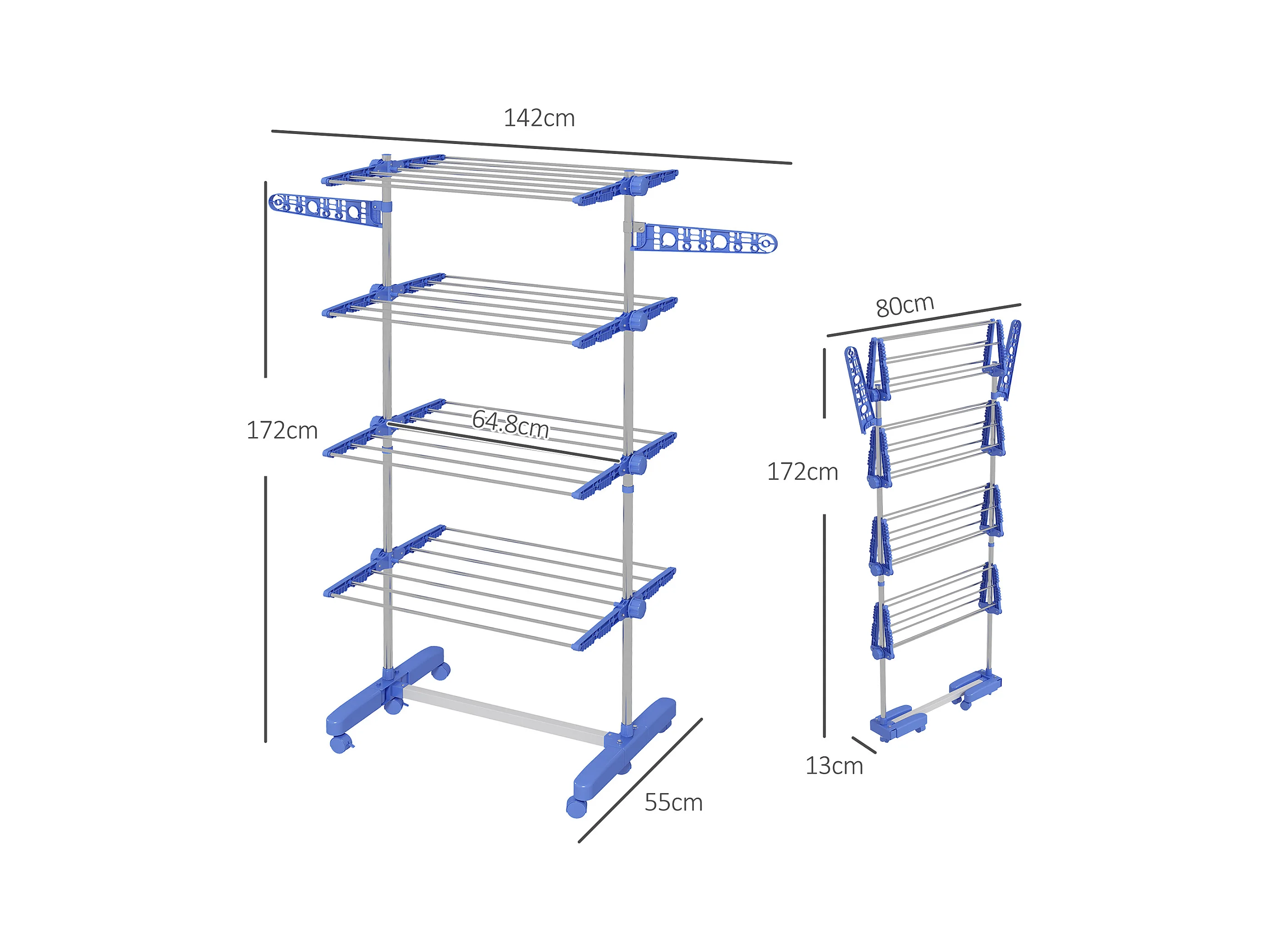 Droger op wielen, 3 niveaus met zijvleugels, staal, blauw (142x55x152 cm)