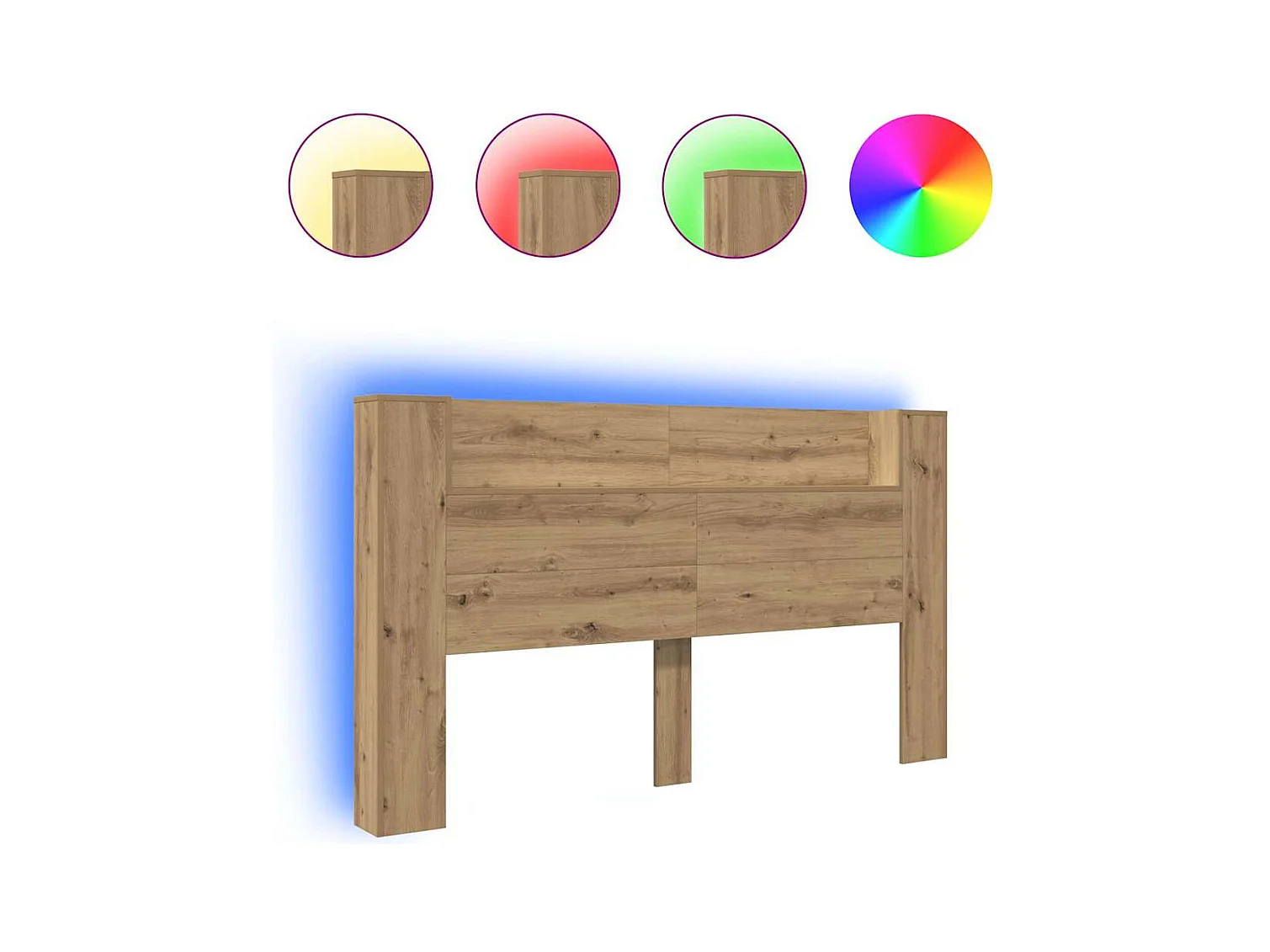 Hoofdbordkast met LED-verlichting, handgemaakt eikenhout, 180x17x102 cm