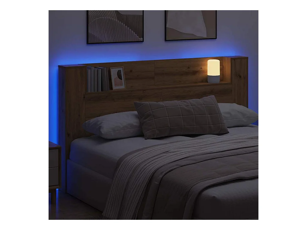 Hoofdbordkast met LED gerookt eiken 180x17x102 cm