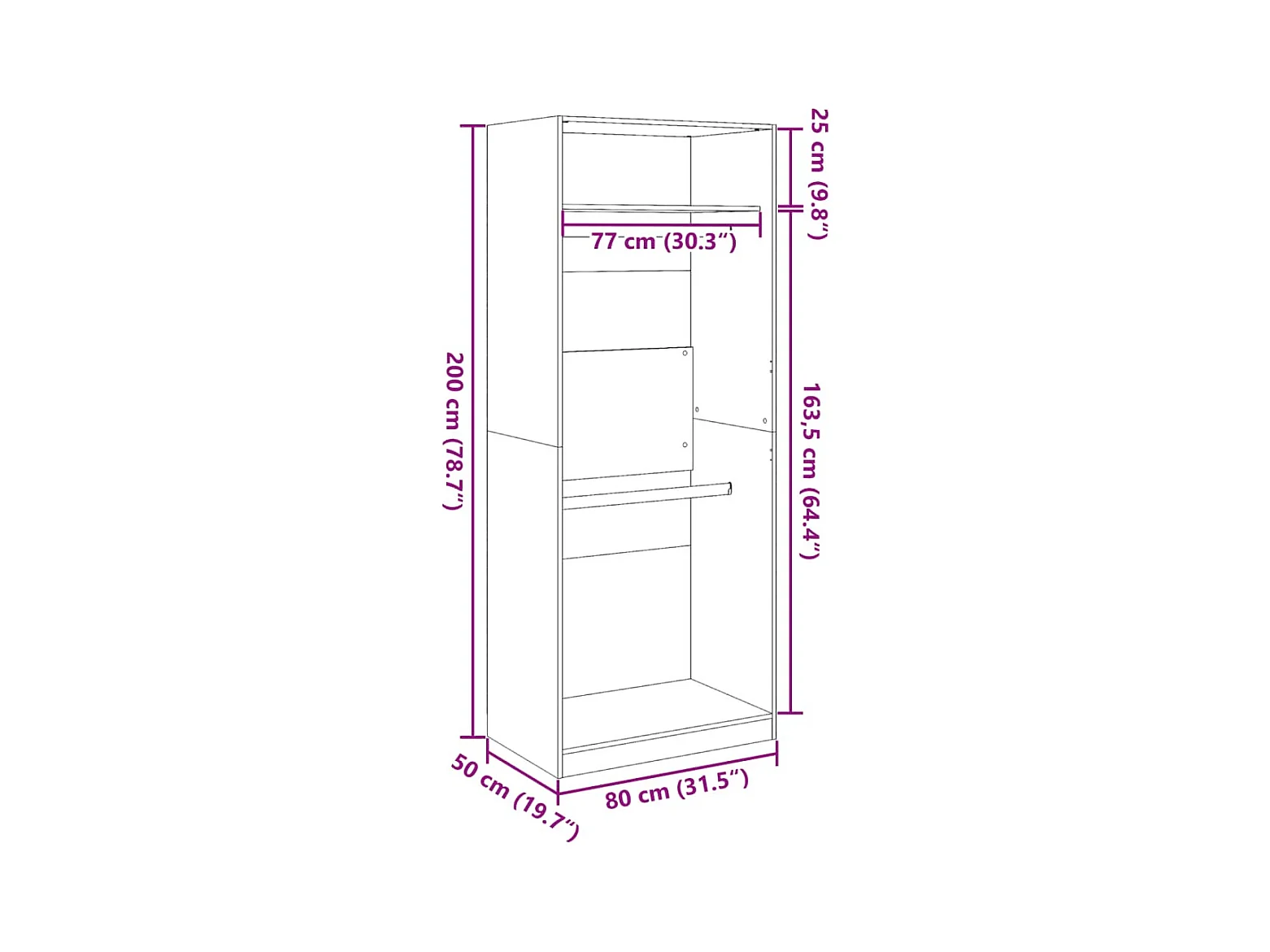 Sonoma eiken kledingkast 80x50x200 cm bewerkt hout