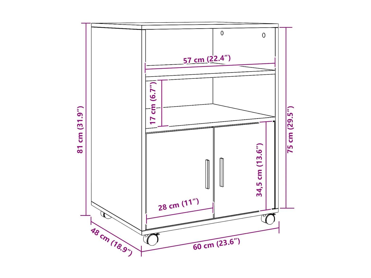 Sonoma eikenhouten rolkast 60x48x81 cm bewerkt hout