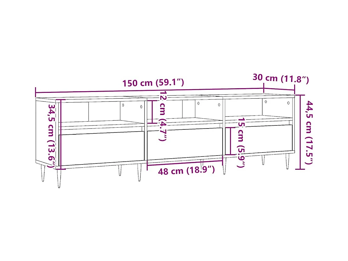 Sonoma eiken tv-kast 150x30x44,5 cm bewerkt hout