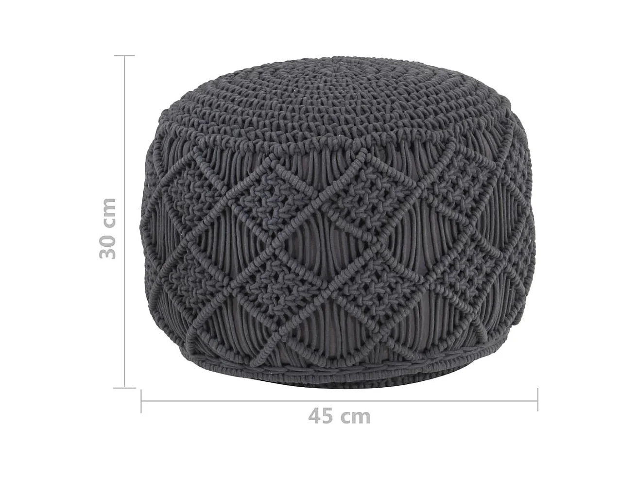 Handgemaakte macramé poef antraciet 45x30 cm katoen