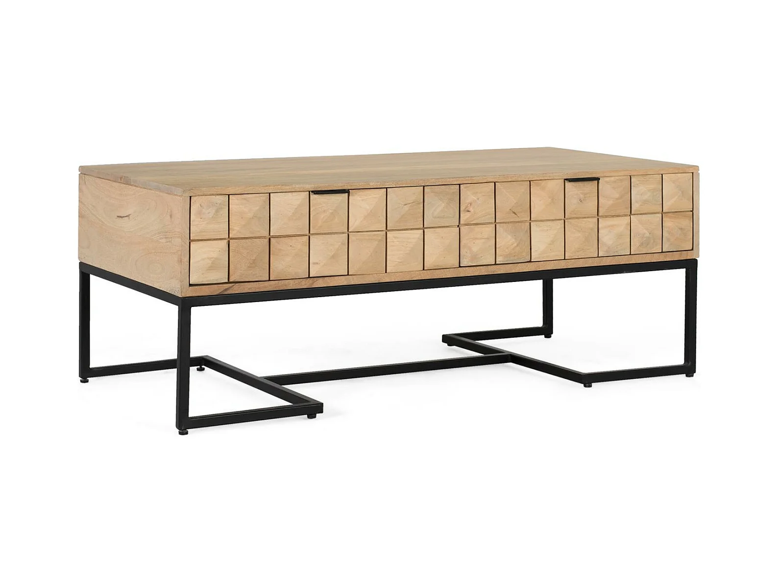 Handgesneden en handgemaakte salontafel van mangohout, 120 cm