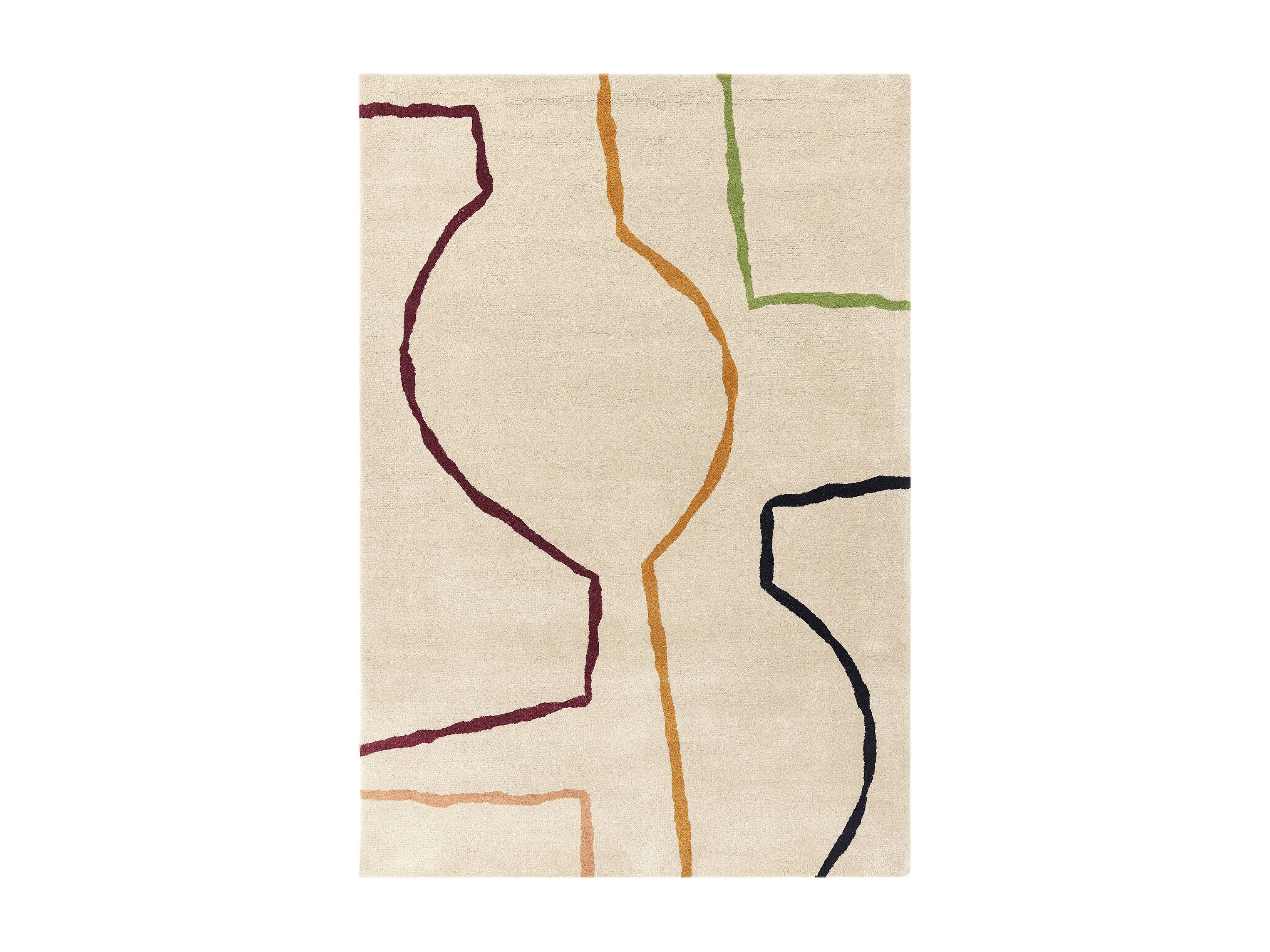 Handgeweven mid-century stijl tapijt van 100% wol - 120x170cm - crème, groen, oker, bordeaux, zwart - Reef Linear