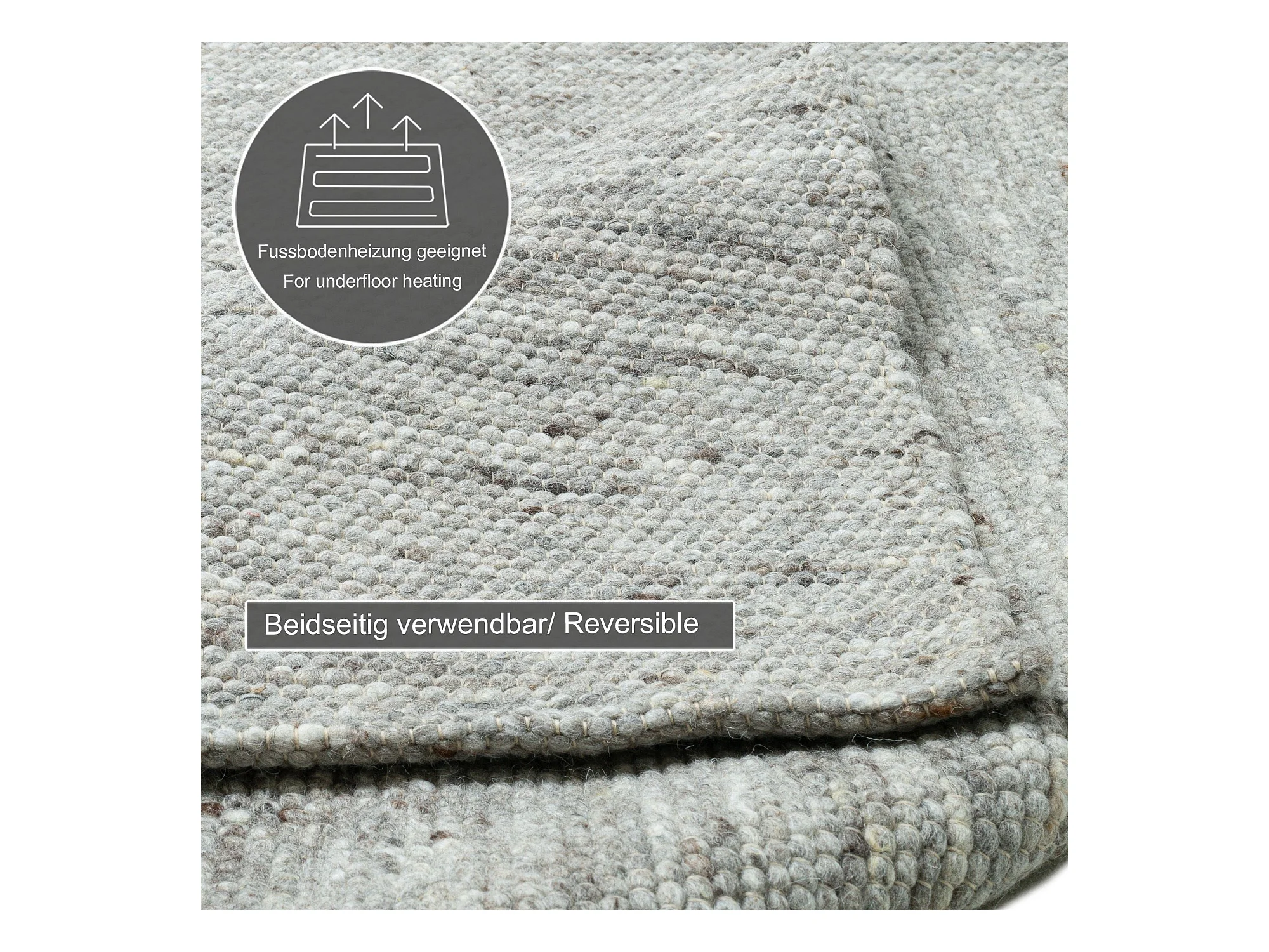 Handgeweven omkeerbaar wollen tapijt 170x240 cm natuurlijk grijs Alpen