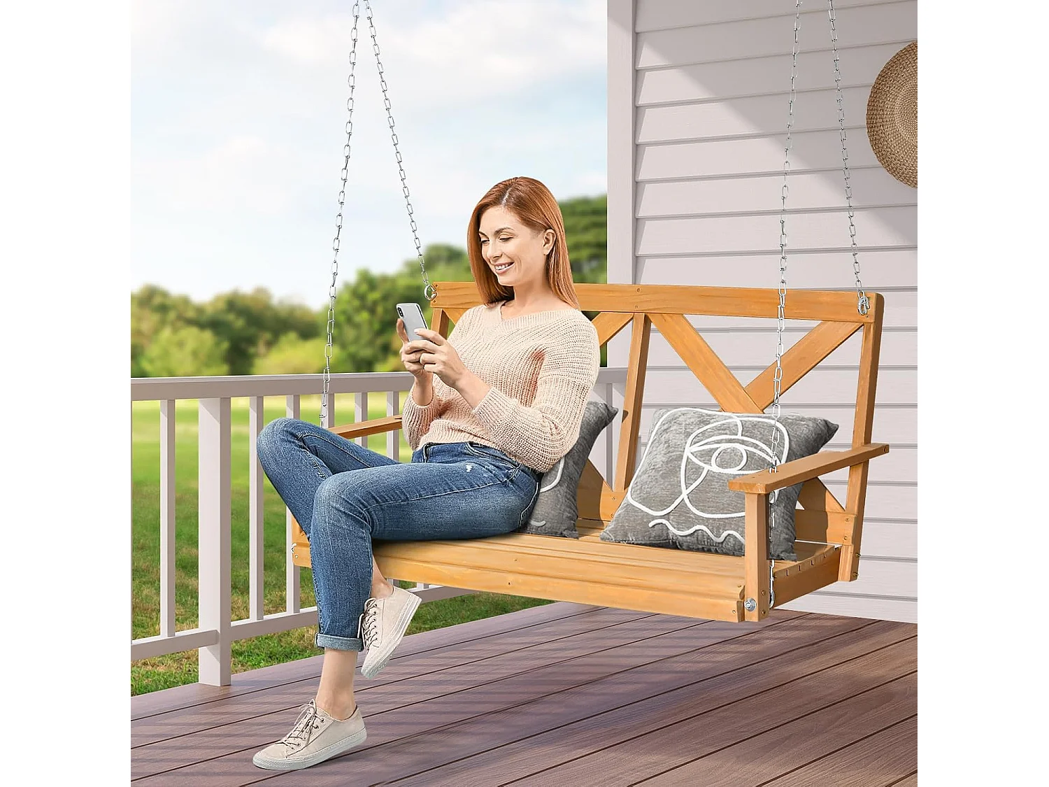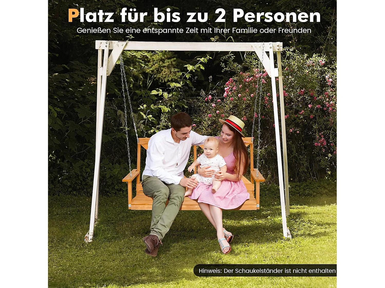 Hangbank van massief hout, 2-zits tuinschommel om op te hangen schommelbank,outdoor schommelbank voor terras, tuin, binnenplaats, 134 x 60 x 65 cm, naturel ZB32183