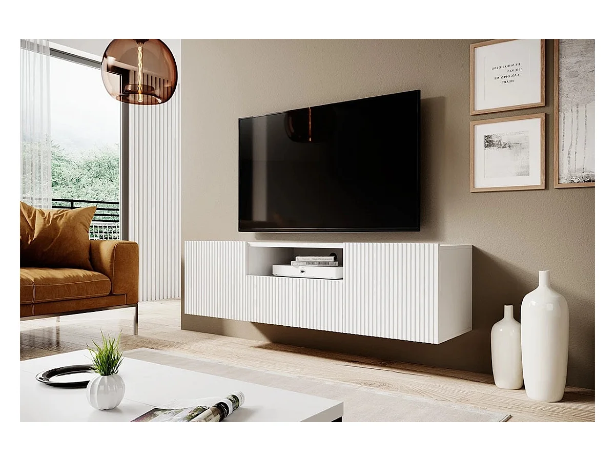 Hangend tv-meubel met 2 deuren en 1 witte plank 150x45 cm