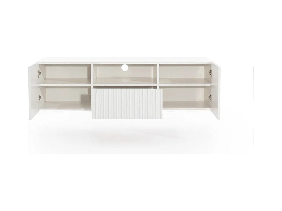 TV-meubel met 2 vouwdeuren en 1 witte lade met metalen onderstel 150x45 cm