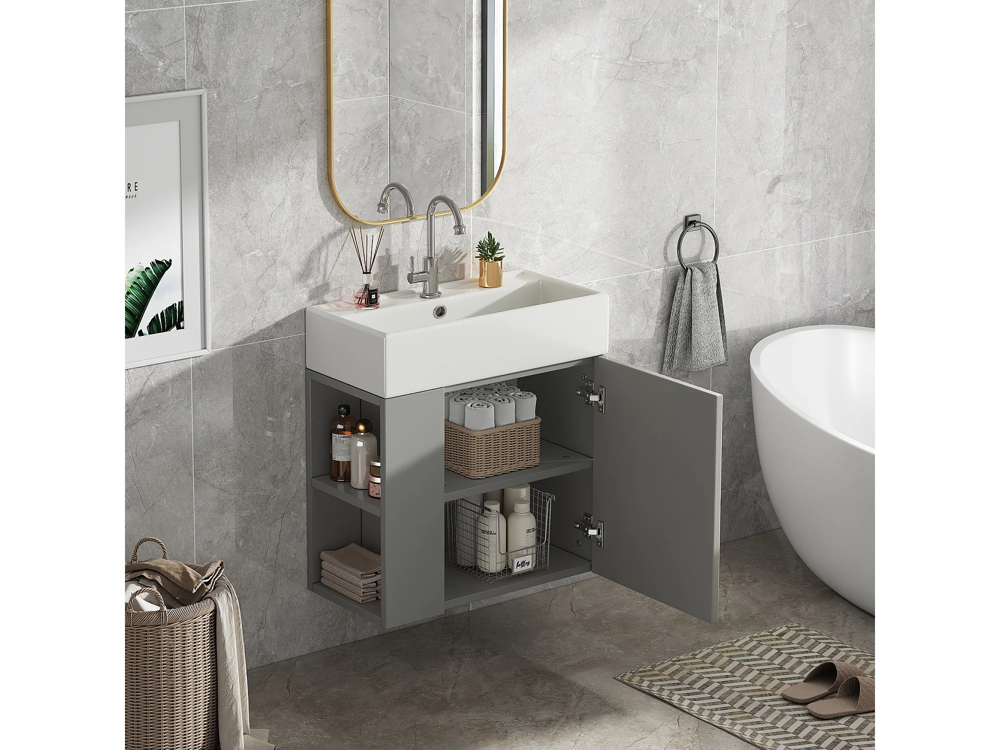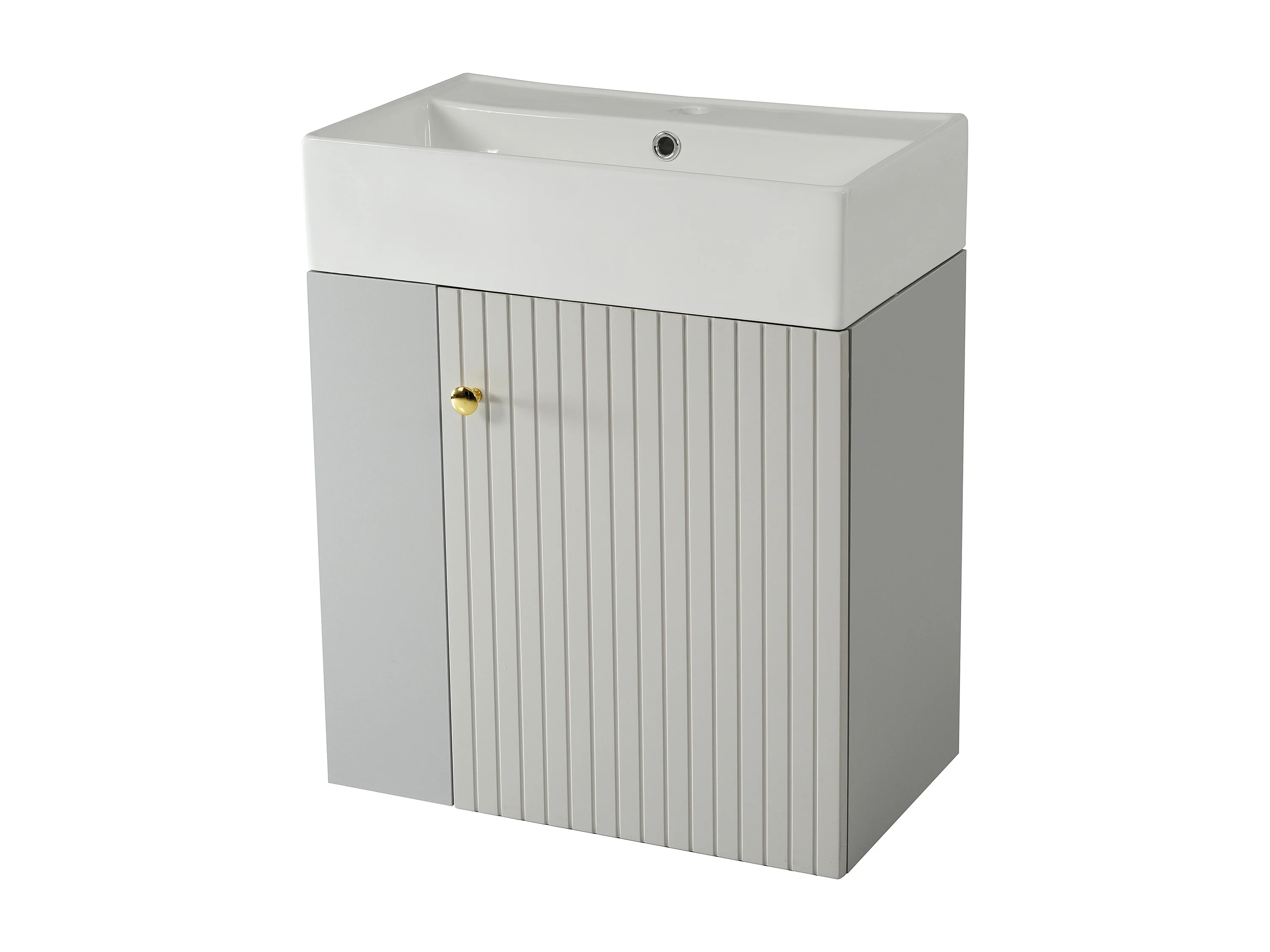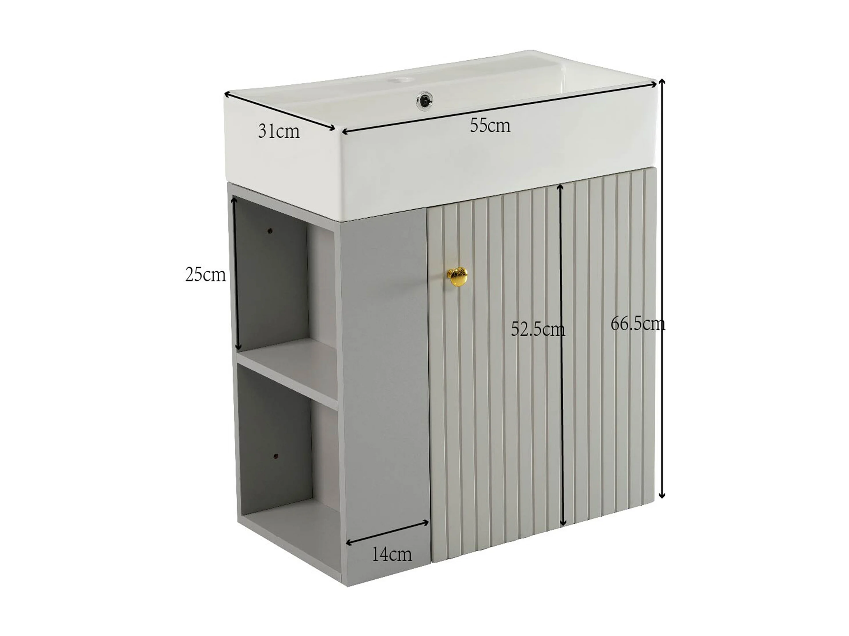 Hangend Wastafelmeubel 55 x 31 x 66,5 cm - Met Opbergruimte Onder Wastafel - Keramiek Wit + Grijze Spaanplaat