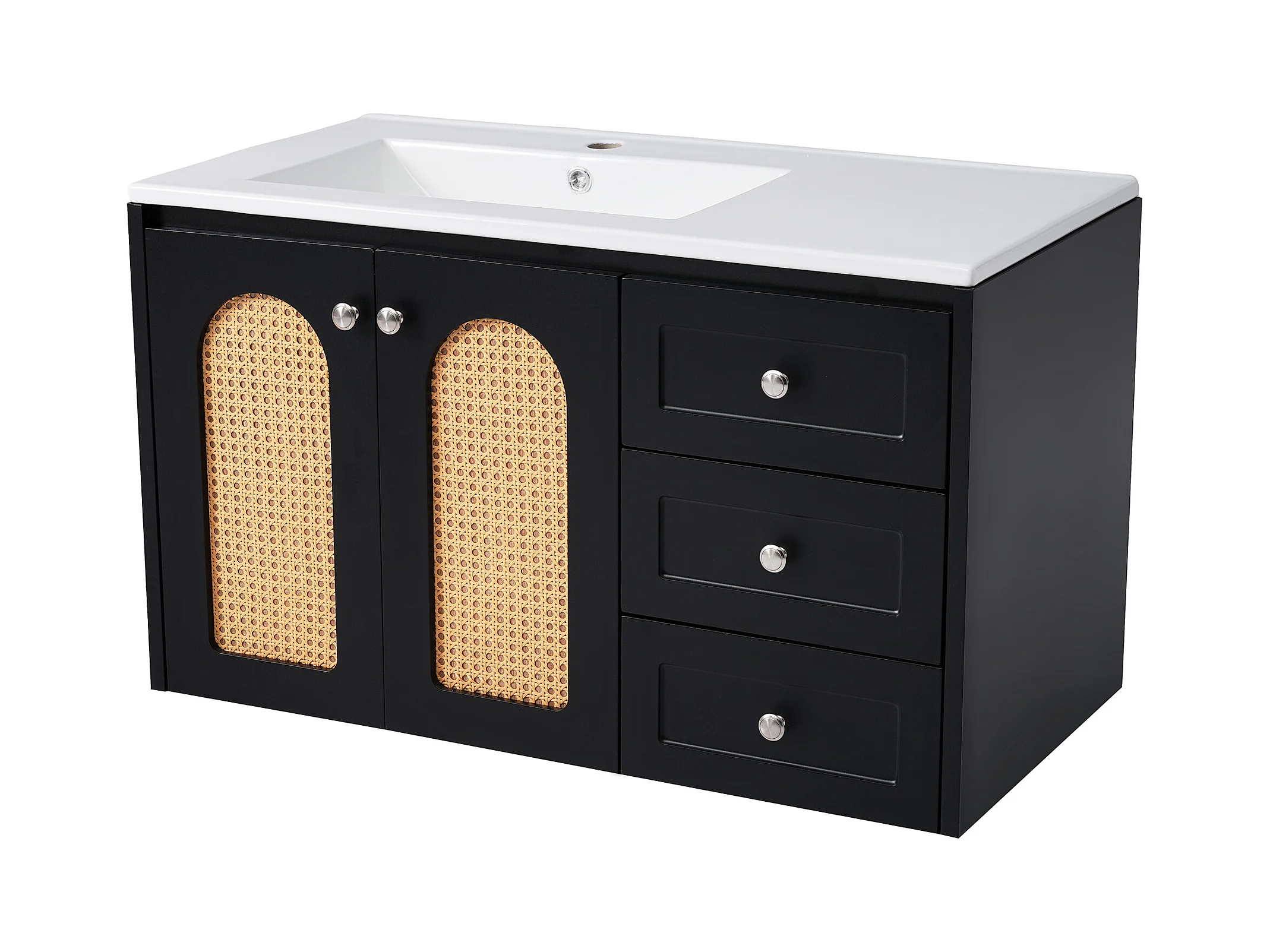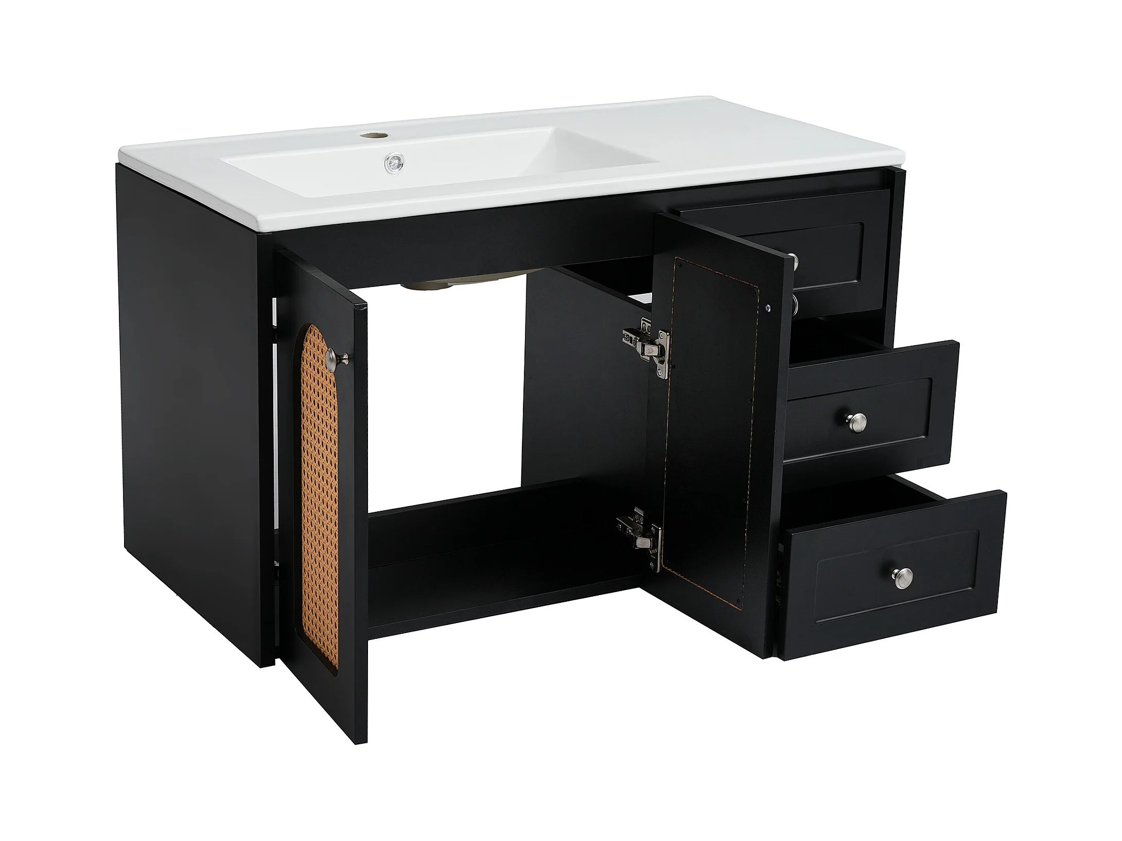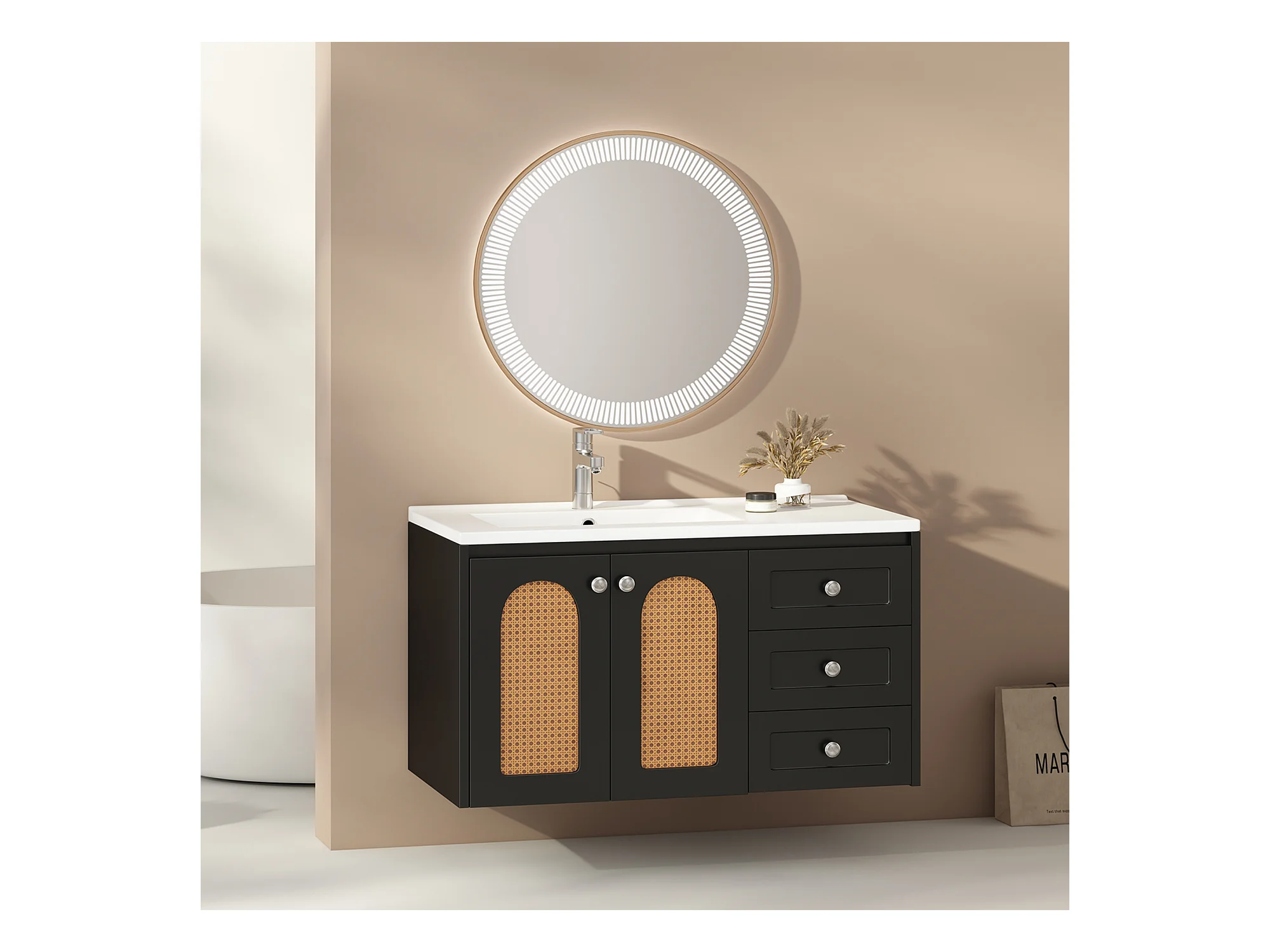 Wandwastafelmeubel met 3 laden en 2 deuren - inbouwwastafel - 90,5 x 46,3 x 54,5 cm - MDF-hout - zwart (zonder spiegel)