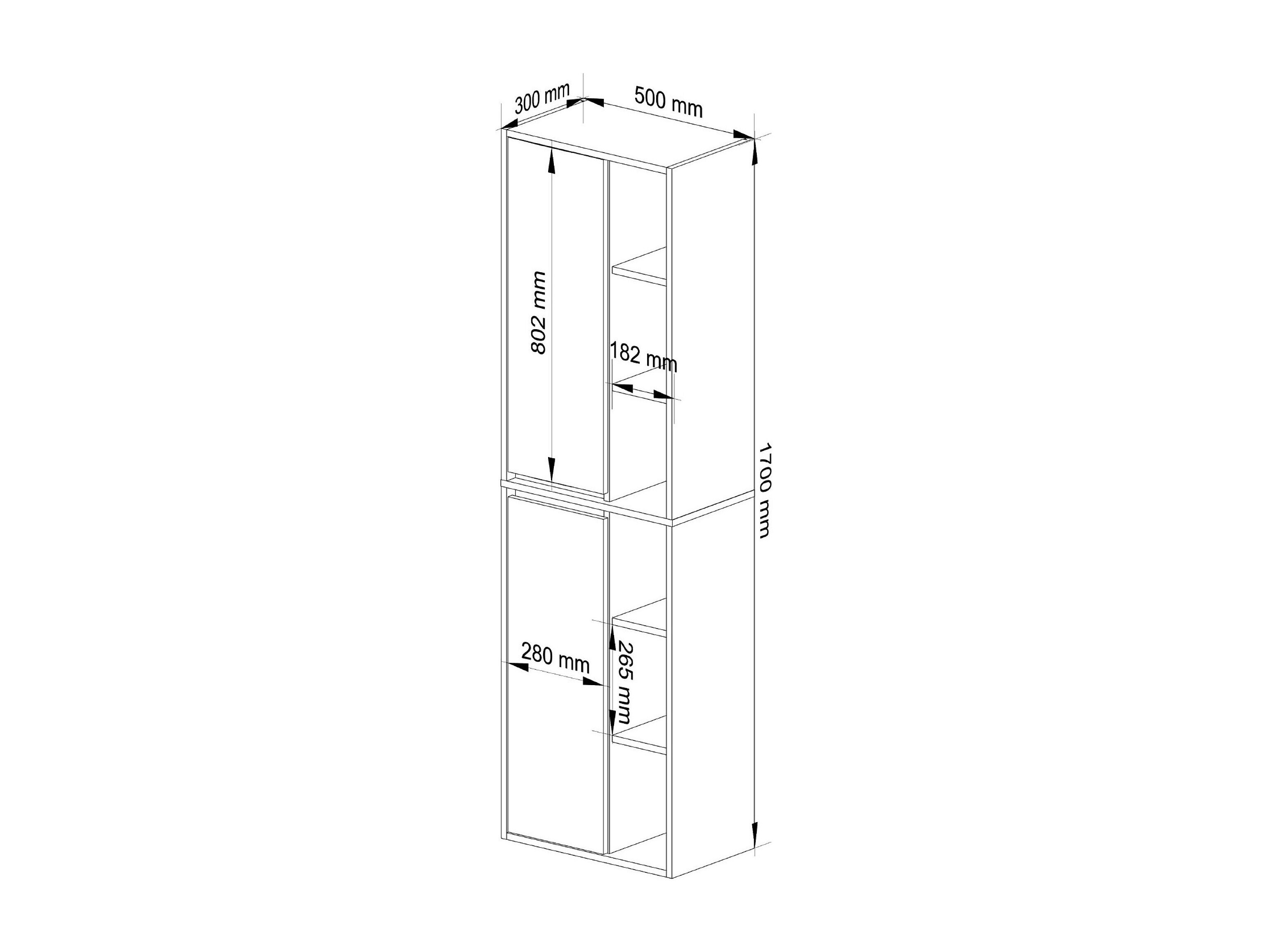 Hangende Badkamerkast Kolomkast VAMI W50 met 2 Deuren en 10 Planken / Artisan Eik - Kasjmier / AKORD Furniture Factory / 50x170x30 cm
