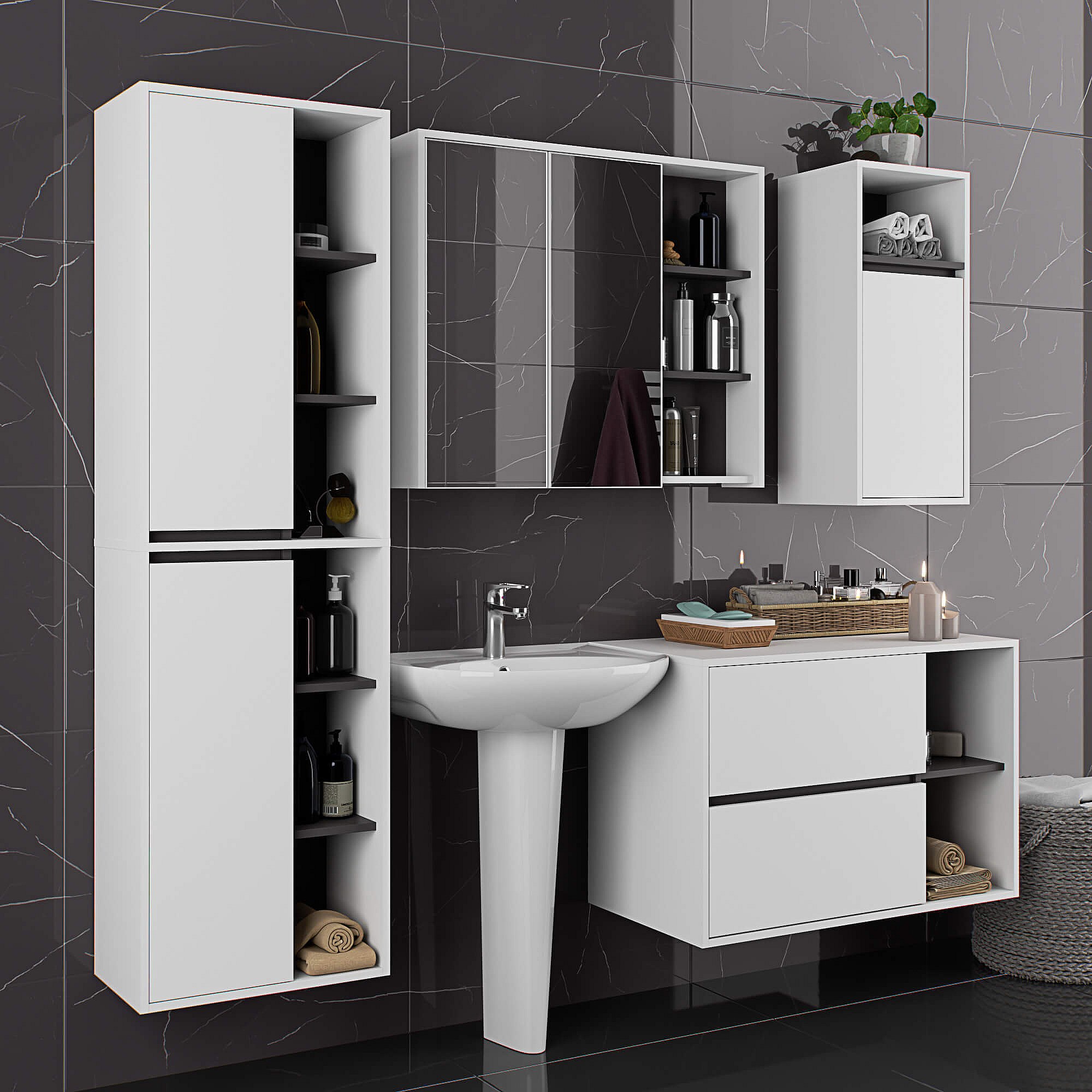 Hangende Badkamerkast Kolomkast VAMI W50 met 2 Deuren en 10 Planken / Wit - Grafietgrijs / AKORD Furniture Factory / 50x170x30 cm